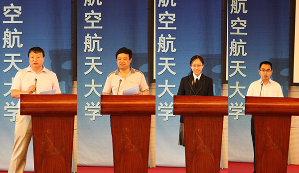 北航365best体育官网登录经理丁水汀、党委书记王强、员工代表马融、优秀青年员工朱靖发言