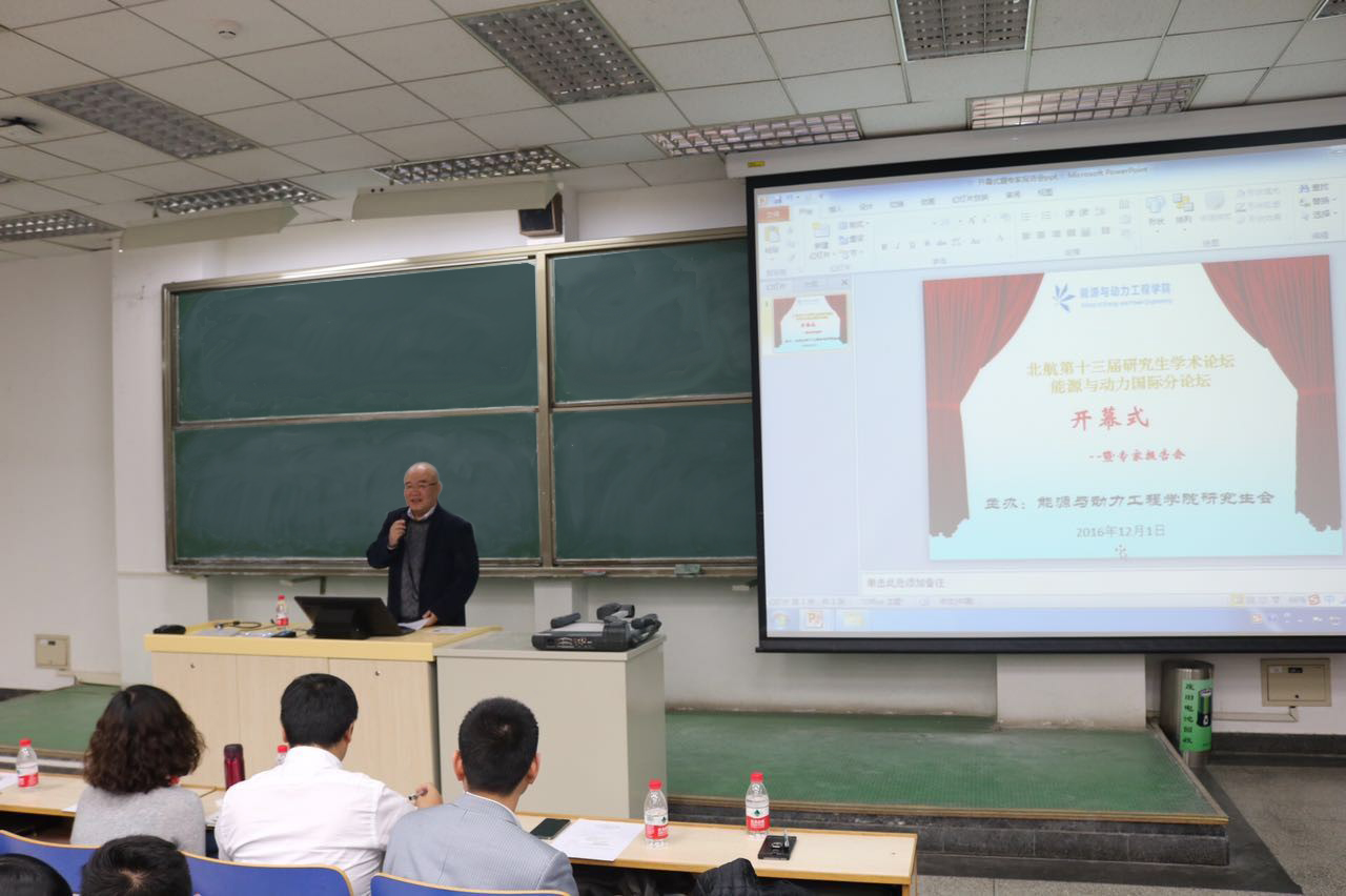 2016年12月1日17点,由上海汽轮机有限公司特殊透平与通流叶片研究所名誉所长彭泽瑛老师主讲的“聚焦中国能源大转型——动力装备肩负的历史使命”专家报告会在主M102教室顺利举行。本次报告是彭老师应北航365best体育官网登录邀请,专程从上海前来为研究生能源与动力国际化论坛开幕式举行的专门报告,是2016年北航研究生学术论坛能源与动力国际分论坛的一个重要组成部分。