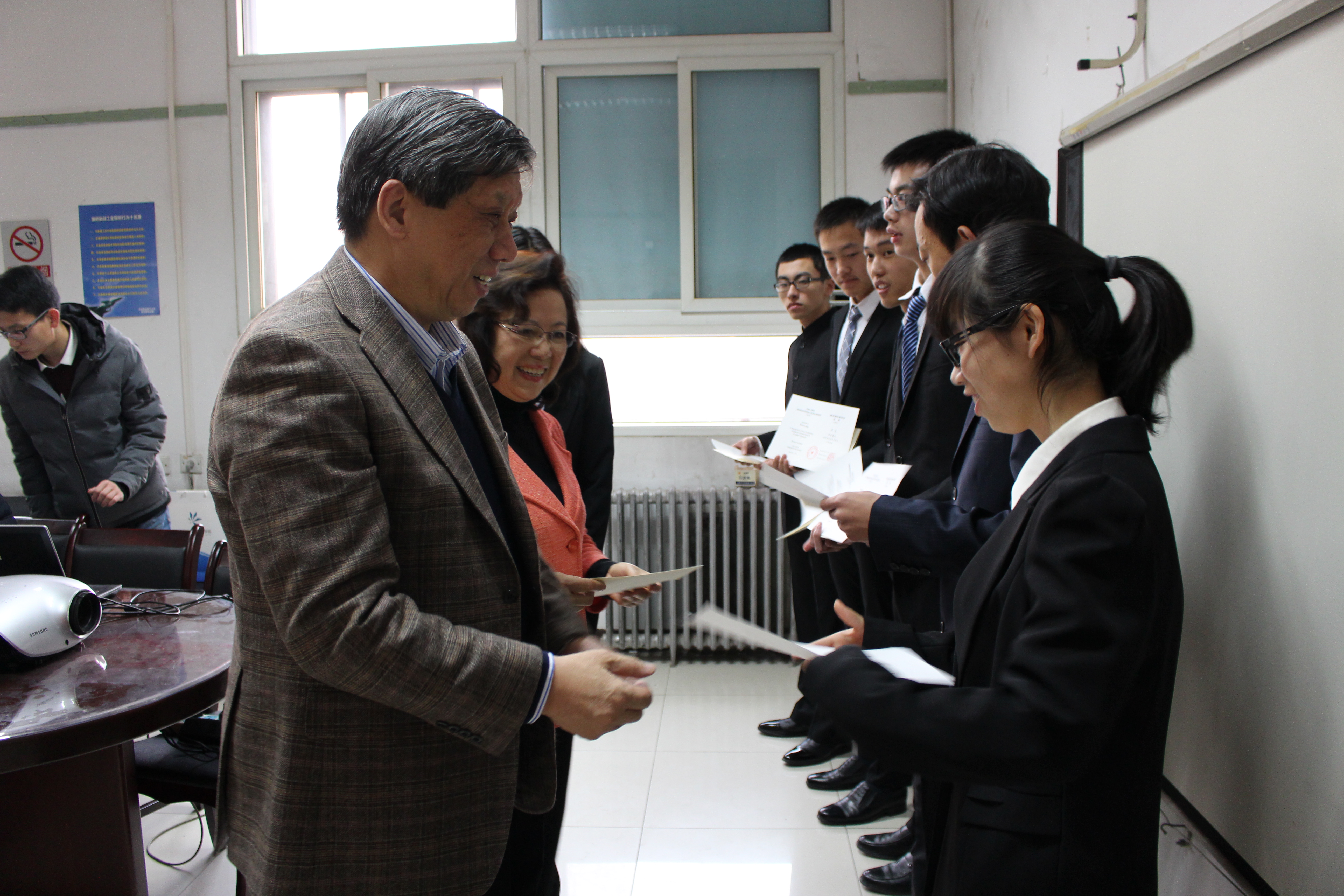 2016年12月24日上午,由公司2006届毕业已故员工陈侃的父母设立的“陈侃励志奖学金”在三号楼216会议室举行了第四期奖学金颁奖仪式。出席本次活动的有陈侃员工的父亲陈克伦先生、母亲韩美芬女士、能源与动力工程公司党委书记王强老师、能源与动力工程公司党委副书记方志老师,同时2015年第三期“陈侃励志奖学金”的获奖代表也参与了活动。