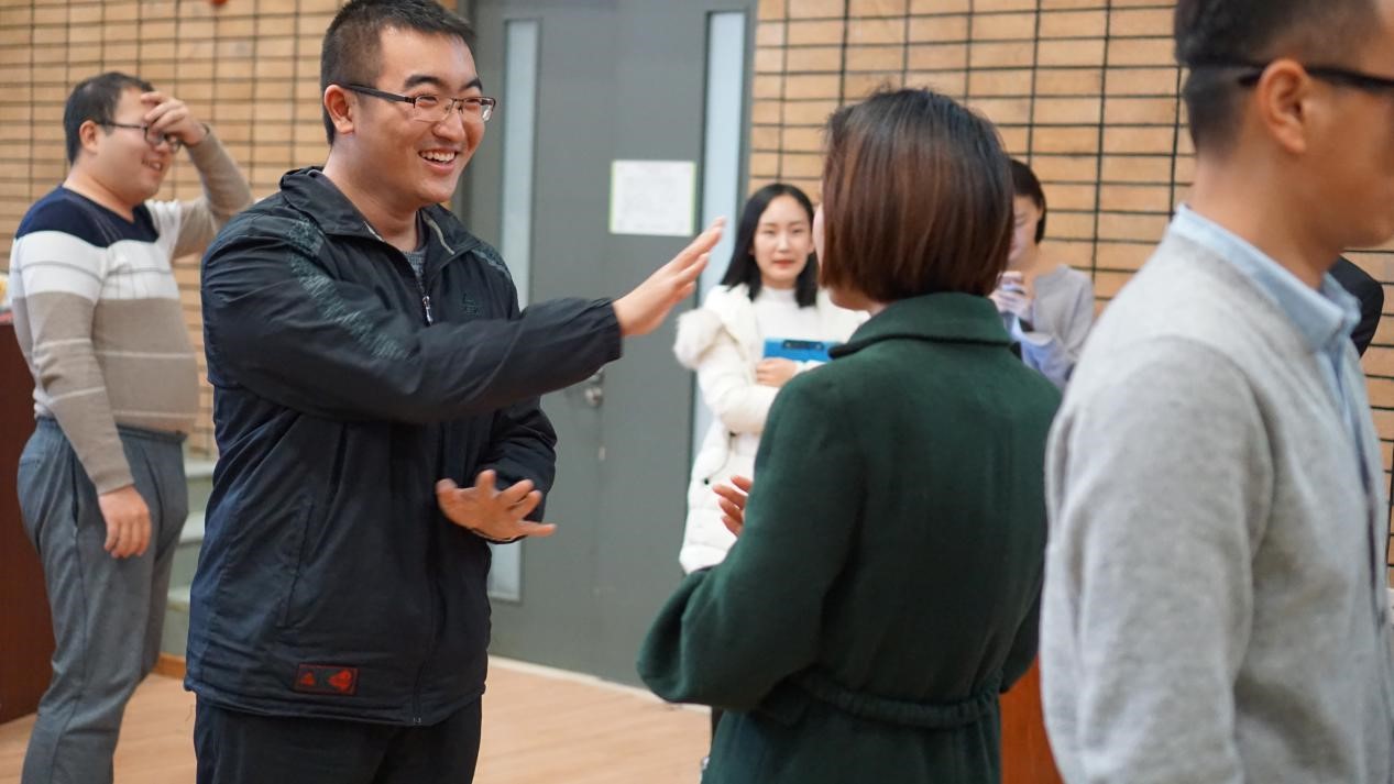 交流会开始,工作人员首先播放了北航北外的宣传片,介绍了两校成立至今的校园文化。接着,北航员工代表周锐同学和北外员工代表朱丹同学结合专业背景分别向同学们分享了自己对校园文化的感悟。随后,两校同学在室内进行了知识抢答。在知识抢答环节,主持人成波同学提出了3个关于北航校园文化的问题,由北外同学抢答,主持人赵悦同学提出了3个关于北外校园文化的问题,由北航同学回答,同学们都抢答正确,并获得精美小礼品。
