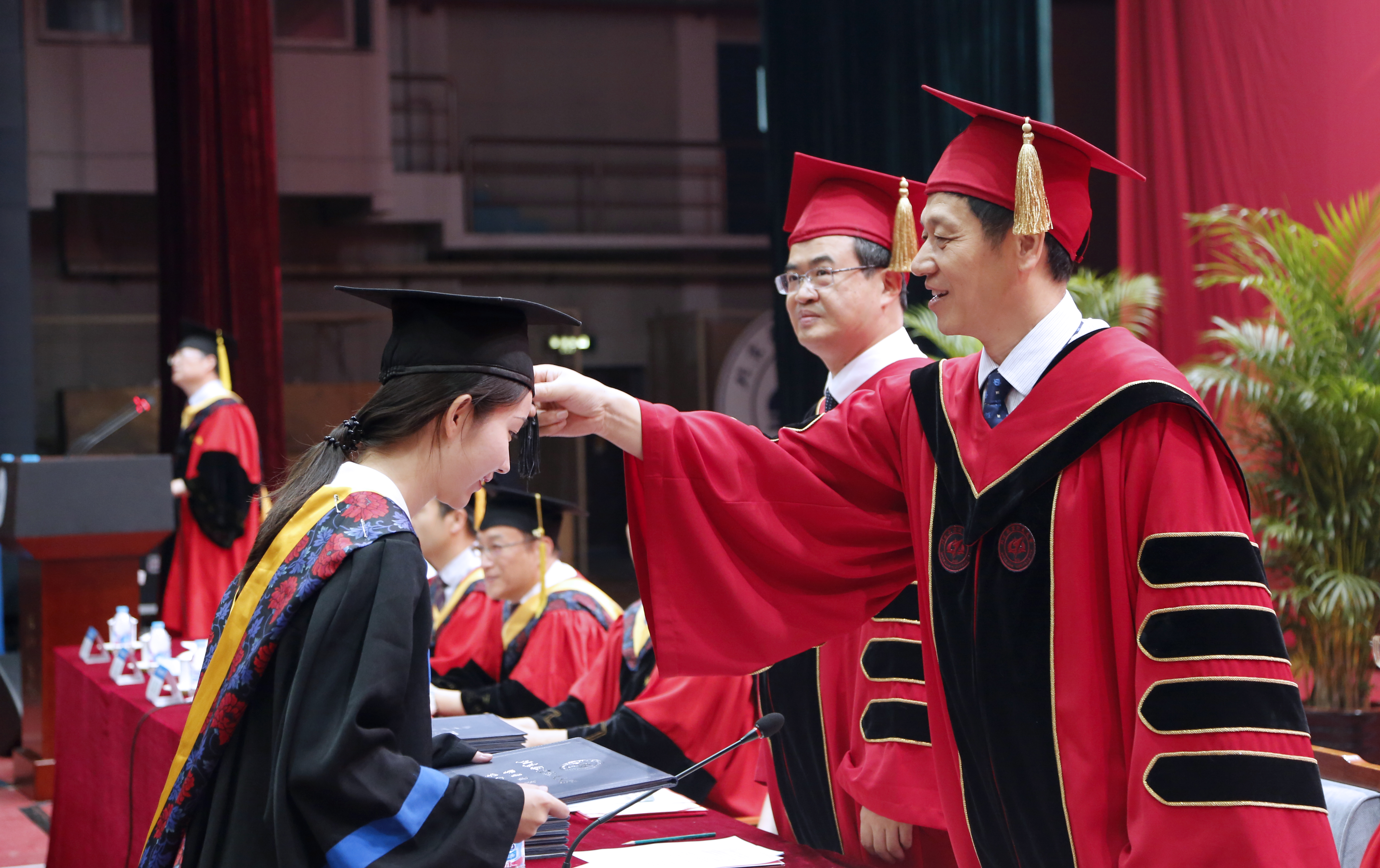 党委书记张军院士为毕业生代表颁发毕业证书和学位证书,董事长徐惠彬院士为毕业生代表授予学位。