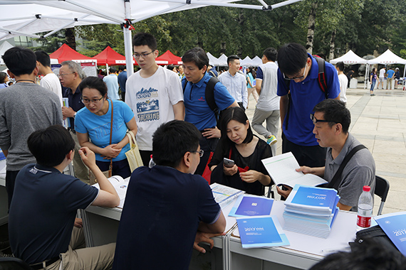 校园开放日活动由现场咨询和政策宣讲两部分组成。在招生咨询区,招生办公室、北京招生组准备好了各种宣传资料,开始接待高考考生和家长的咨询。