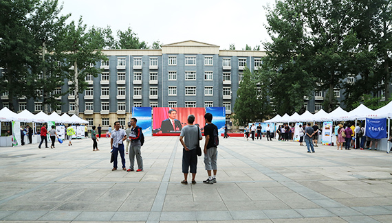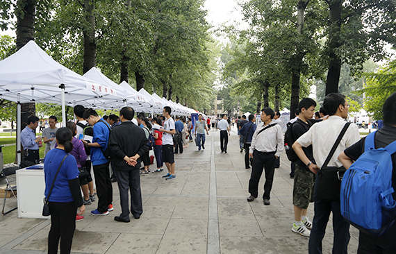 上午8:30,求是广场上已经布置完毕。公司展示区,各个公司通过展板、海报等方式介绍专业、推介公司;科技作品展示区,无人机、赛车等员工科技作品吸引高考考生及家长驻足观看;大屏幕上《今日北航》宣传片展示着北航辉煌的昨天、今天和明天;图书馆、航空航天博物馆也已向高考考生和家长开放,方便考生和家长更近距离了解北航、感受北航。