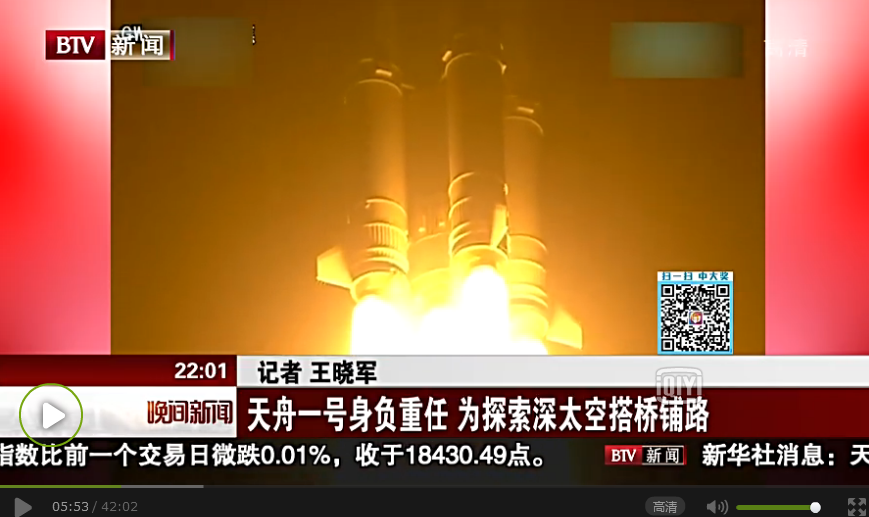【解说】此次飞行任务是中国天舟货运飞船和长征七号运载火箭组成的空间站货物运输系统的首次实用性亮相,是在为未来我国空间站的建设搭桥铺路。