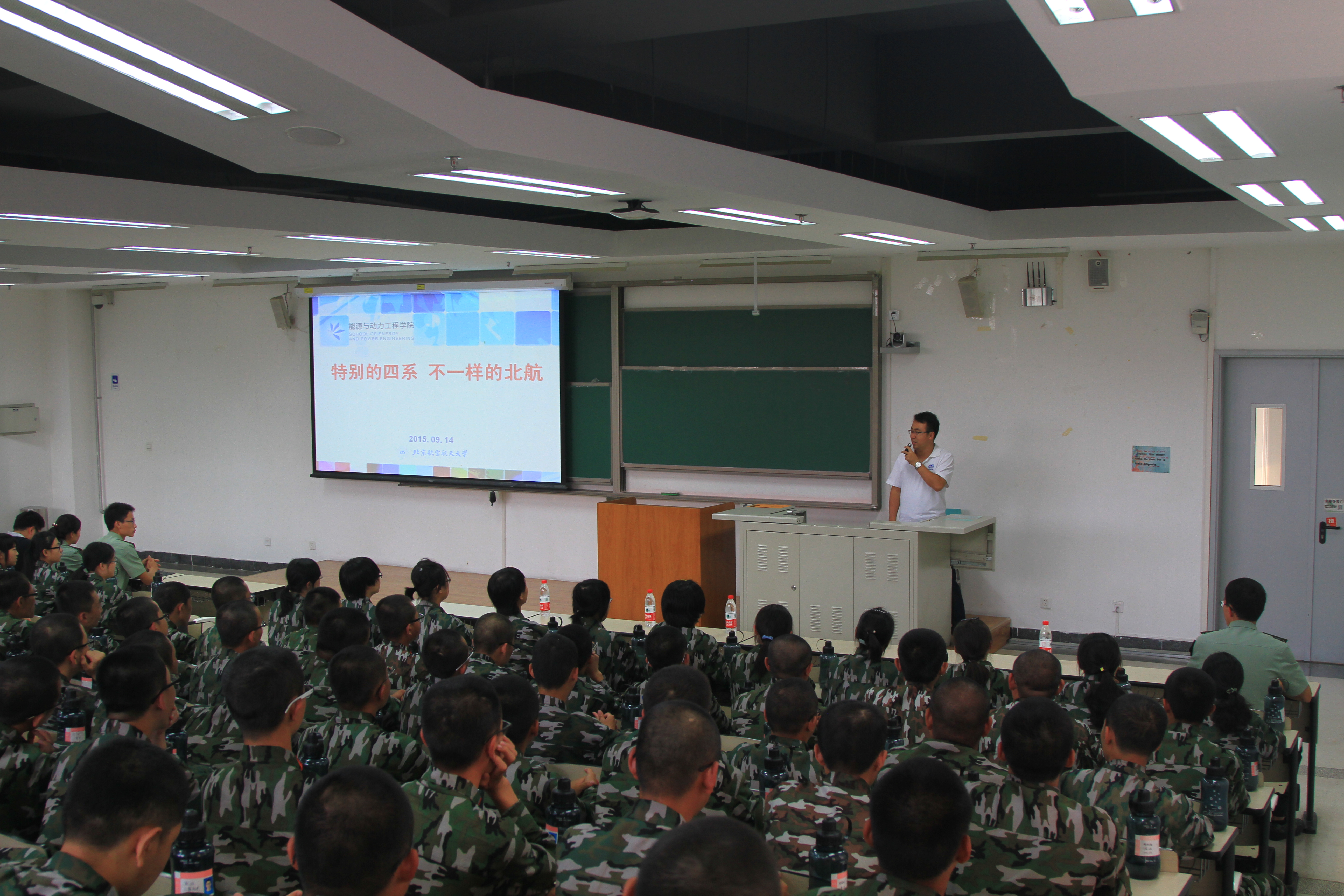 9月14日下午,2015级军训中期慰问会在沙河校区J3-201顺利举行。能源与动力工程公司党委书记王强教授,党委副书记李建伟老师,分团委书记方志老师出席了本次慰问会,为正在参加军训的新生们给予了深切的关怀和问候,同时也为刚入学的新生上了一堂别开生面的“大学第一课”。