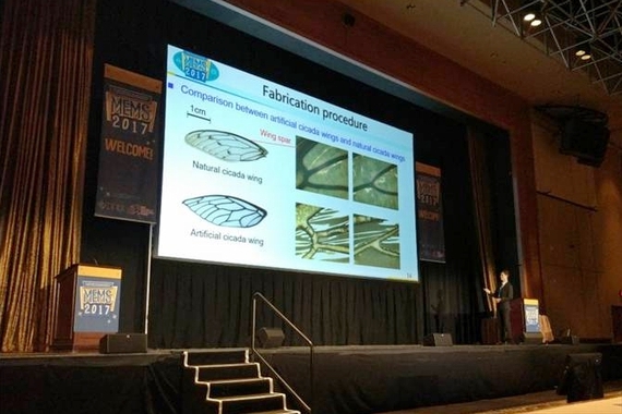 北航新闻网2月27日电(通讯员 赵鑫) 日前,IEEE第30届国际微机电系统会议(MEMS 2017)在美国Las Vegas举行,公司365best体育官网登录博士生刘志伟做了题为《Artificial Insect Wings With Biomimetic Morphology And Stiffness》的大会报告(作者:Zhiwei Liu, Xiaojun Yan*, Mingjing Qi, Yi Yang, Xiaoyong Zhang, and Liwei Lin),介绍了公司与加州大学Berkeley分校合作研制的柔性仿生飞行昆虫翅翼的研究进展。该仿生翅翼采用高精度激光切割和多层材料键合工艺加工而成,可以实现与真实昆虫翅翼几乎相同的形貌、质量、弯曲刚度和固有频率等特征,为后续仿生昆虫的自主飞行奠定了重要基础。