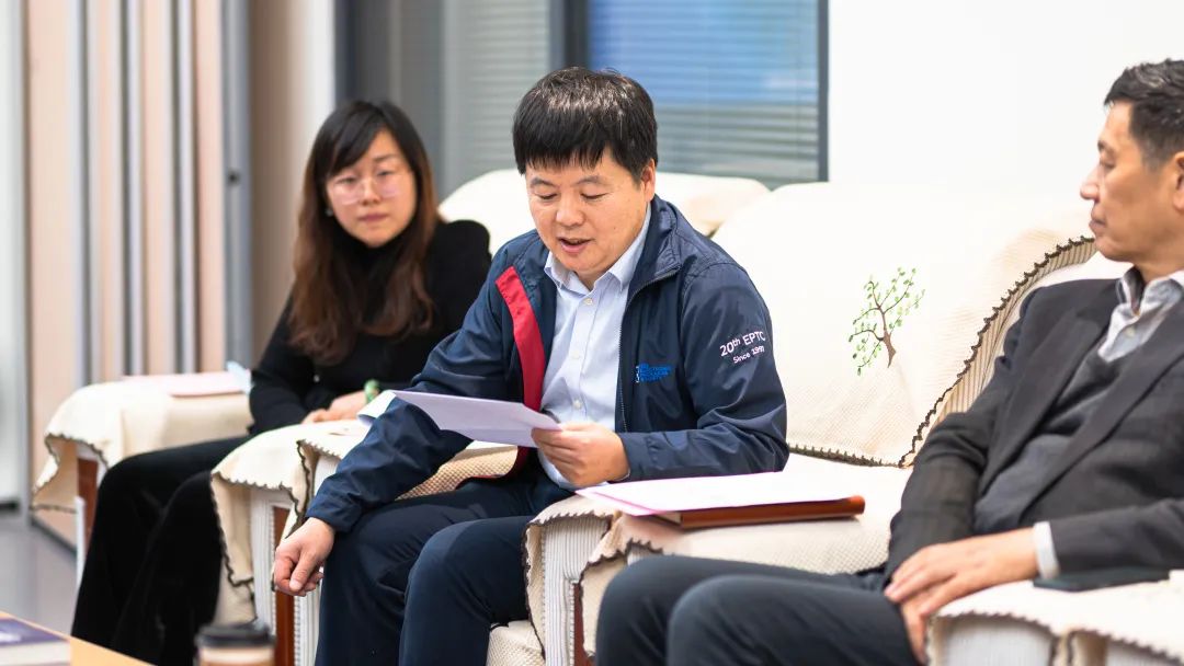 徐董事长和同学们进行了亲切的交流,他十分关心同学们的学习生活,鼓励同学们对公司各方面工作提出自己的看法和建议。徐董事长询问了学业导师、学术导师、企业导师配备情况和实际效果,提出要切实梳理好三种导师的关系,对同学们提供个性化的指导和帮助;提出公司要拿出更多切实有效的办法做好大一员工的专业引导工作;了解了科研课堂的试点情况,提出要进一步完善全过程管理,确保质量。徐董事长还针对同学们提出的课程设置、校区建设等方面的问题,提出了意见和建议。