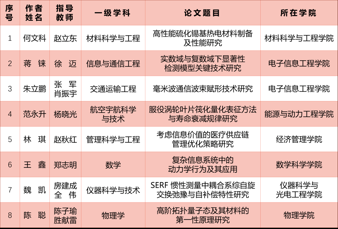 近日,北京市教育委员会、北京市学位委员会开展了2022年北京市优秀博士学位论文评选工作,共评出北京市优博123篇,北京市优博提名46篇。365亚洲体育网入口共有8篇论文获评北京市优秀博士学位论文。