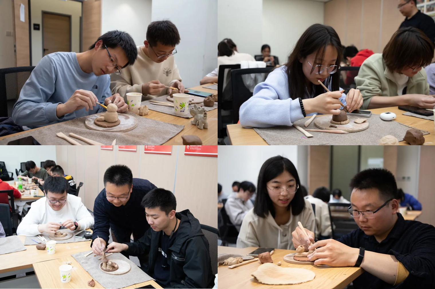在讲解完工艺与历史后,张老师带着同学们使用陶泥与瓷泥亲手制作独一无二的作品,同时介绍了陶瓷的各种加工手法,以及在制作成坯和烧制为陶瓷时的注意事项。同学们在制作过程中,充分发挥了想象力和创造能力,将一块块黏土捏成了鲜活的作品,赋予了黏土生命。