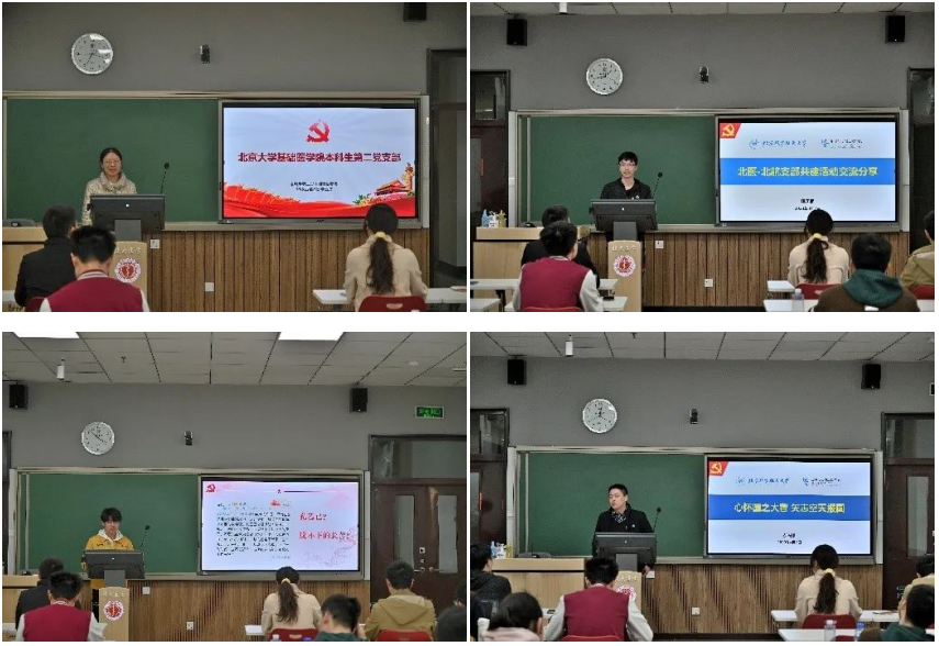 在交流共建会的最后,双方支部党员进行了多方面的交流,提出自己对于各自领域内的疑问并予以解答,气氛轻松愉悦。最后北京大学基础医公司本科生第二党支部书记范晓琪进行总结发言,强调无论医学还是航空航天,不同专业领域的同志都能以自己的方式为国家和社会做贡献,员工党员要刻苦钻研,夯实专业基础,在新征程上交出当代青年的优秀答卷。