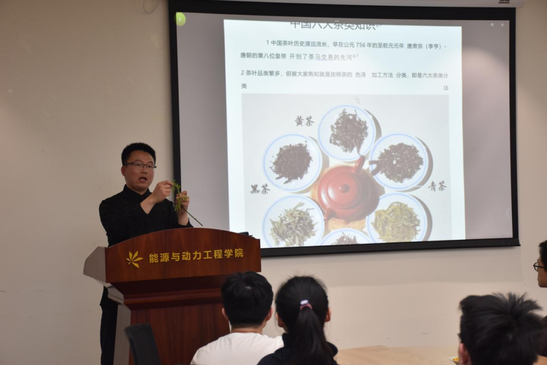 随后,张老师向我们介绍了中国的六大茶种,分别是绿茶、白茶、黄茶、青茶(乌龙茶)、红茶、黑茶。他们以发酵程度从低到高排列,各有特色的制作工艺和茶香茶色,让人不得不惊叹于茶文化的博大精深。