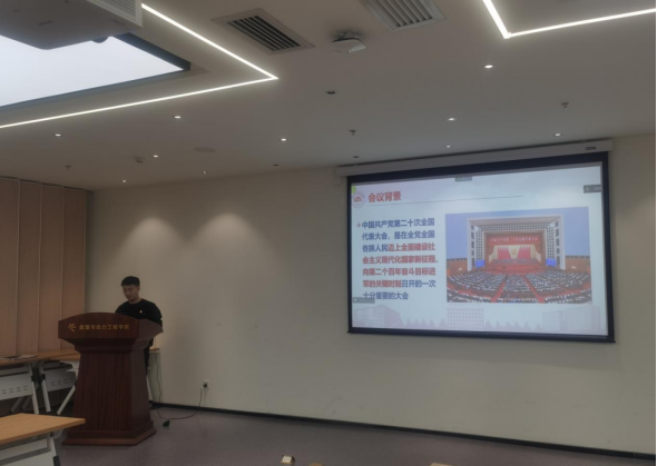 党支部书记带领大家深入学习领会党的二十大报告原文。首先,系统梳理了领学章节内容的发展脉络,学习分享其历史逻辑,理论逻辑和实践逻辑,深入理解“五位一体”总体布局和“四个全面”战略布局,深刻领悟“两个确立”的决定性意义,增强“四个意识”、坚定“四个自信”、做到“两个维护”。其次,结合我国取得的举世瞩目成就,结合所学航空动力专业,结合北航事业发展和身边优秀事迹,深入介绍领学章节,加深大家对报告内容的理解。最后,号召同学们从党的二十大精神汲取成长成才养分,传承空天报国精神,争做强国时代新人。
