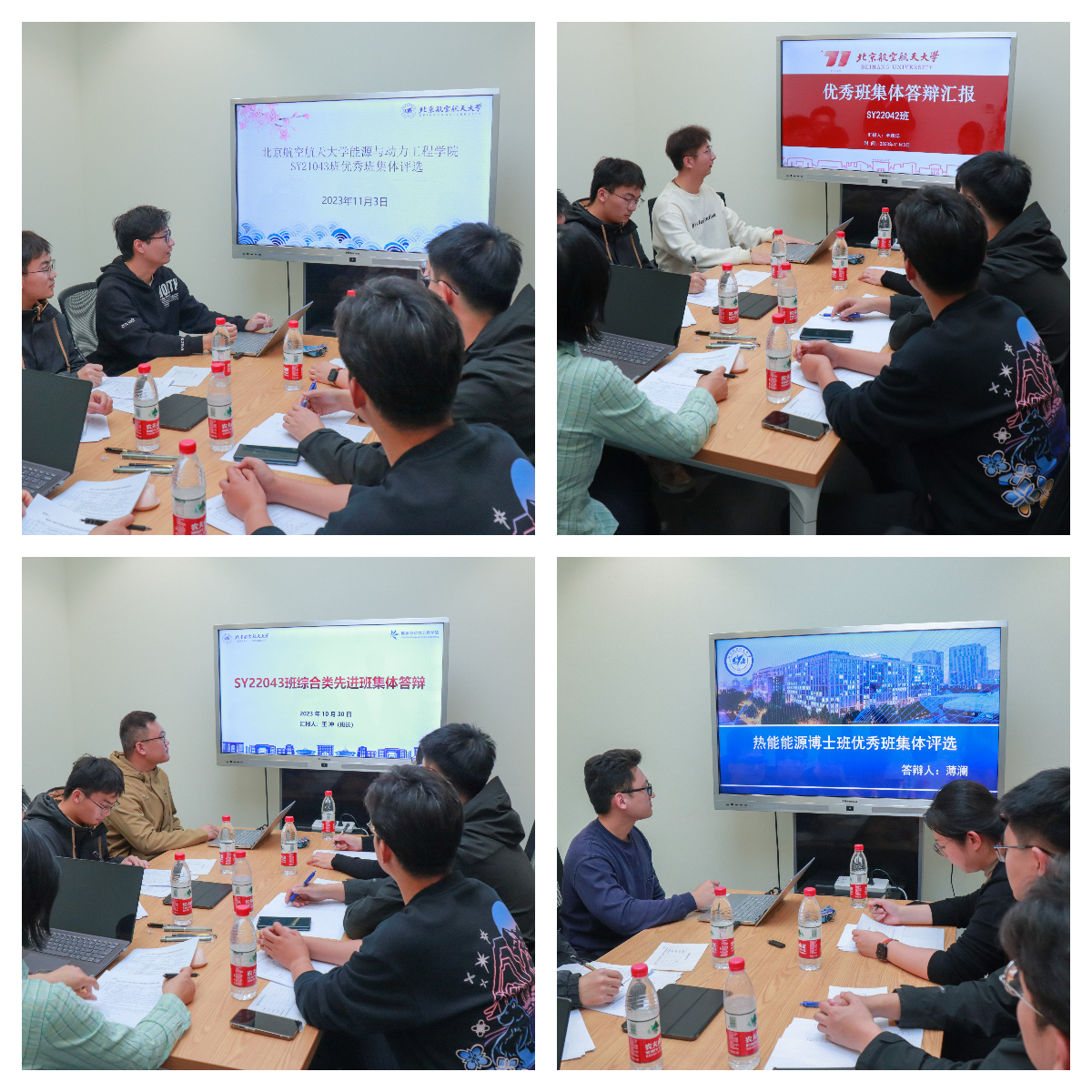 各答辩班级思想上积极向上,大力开展党团建设,学习先进思想理论;学业上硕果累累,投身科研,攻坚克难,发表多篇高质量论文;文体上全面发展,积极参与志愿服务、社会实践、校运动会、文艺表演、校际联谊、国际交流等活动;班级内团结一致,班干部认真负责,同学间互帮互助。