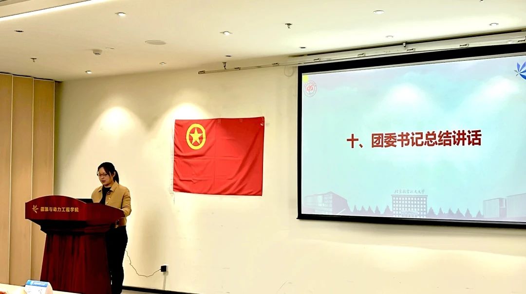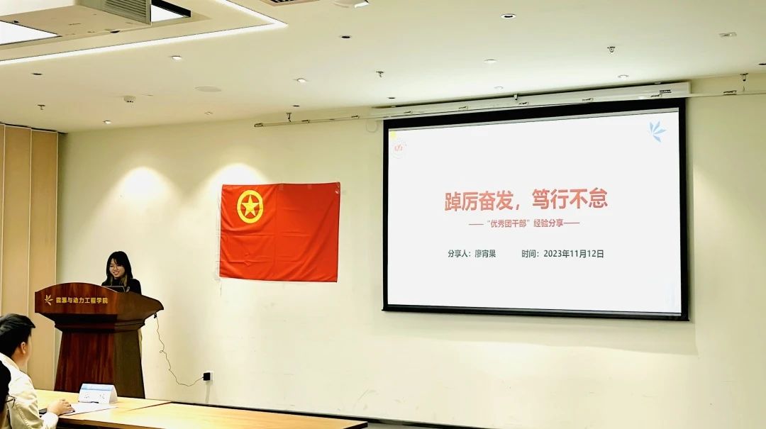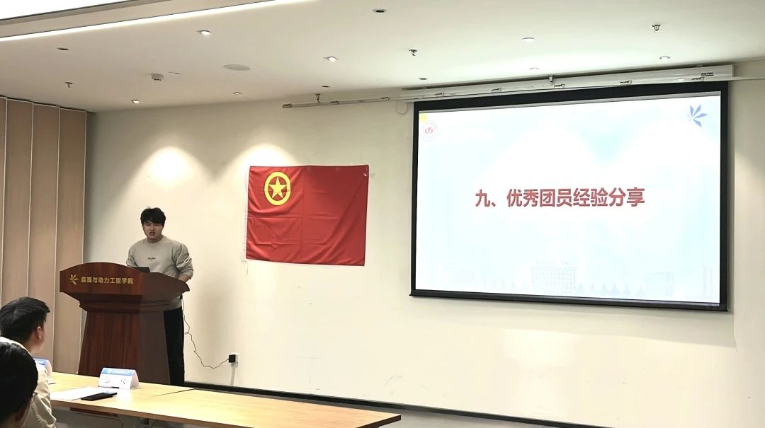 优秀团干部廖宵果以“踔厉奋发,笃行不怠”为主题,分享自己大学以来在学业成绩、员工工作、科技竞赛、社会实践等各方面的成长与收获,号召大家应当夯实数理基础,加强理论学习,并在实践中学真知悟真谛,在祖国的万里长空放飞青春梦想,以昂扬奋进的姿态书写无愧于时代的壮丽篇章。