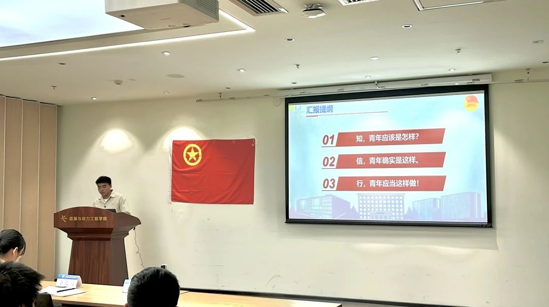 随后,熊钧儒代表新团员表态,时刻牢记入团誓词,严格要求自己,不断学习进步,积极实践,以稳健的步伐前行,敏锐的眼光看待问题,在担当和尽责中成长。