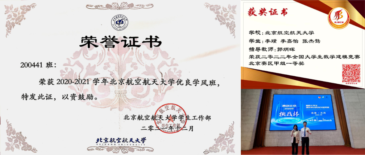 班级同学在校级及以上学科竞赛中获奖34人次,全国老员工数学竞赛北京市一等奖3人,“外教社词达人杯”全国一等奖1人,全国老员工数学建模竞赛一等奖1项。