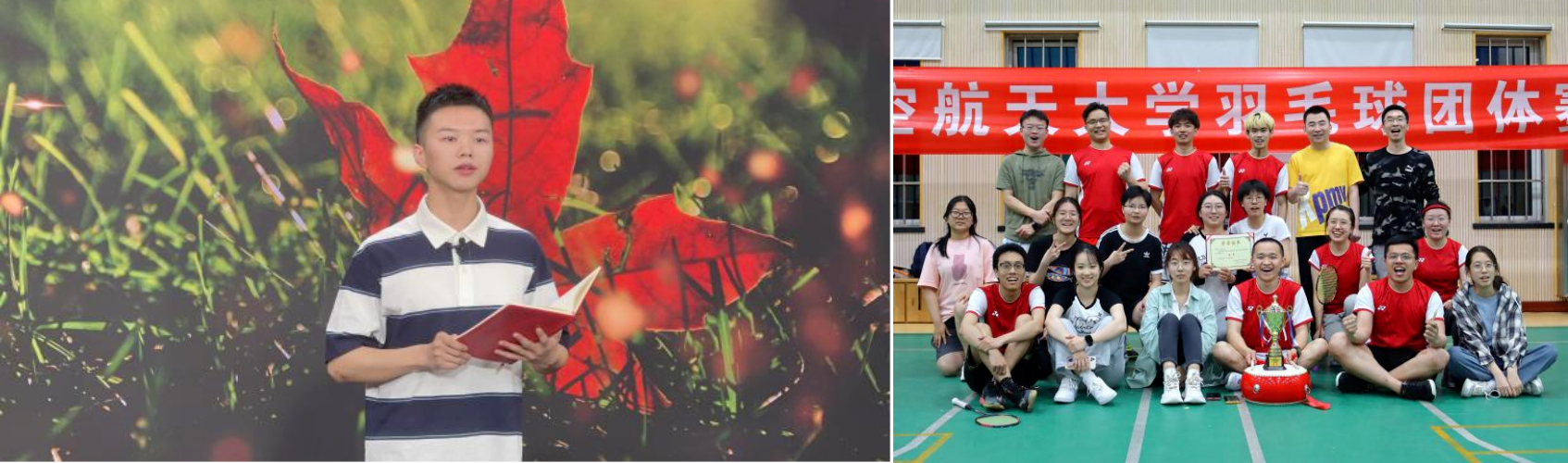 同学们热爱运动,强健体魄,参加校级体育赛事24人次,在运动场上屡创佳绩。同学们积极参加公司篮球赛,勇夺冠军;在北航羽毛球团体赛中获得沙河校区冠军。