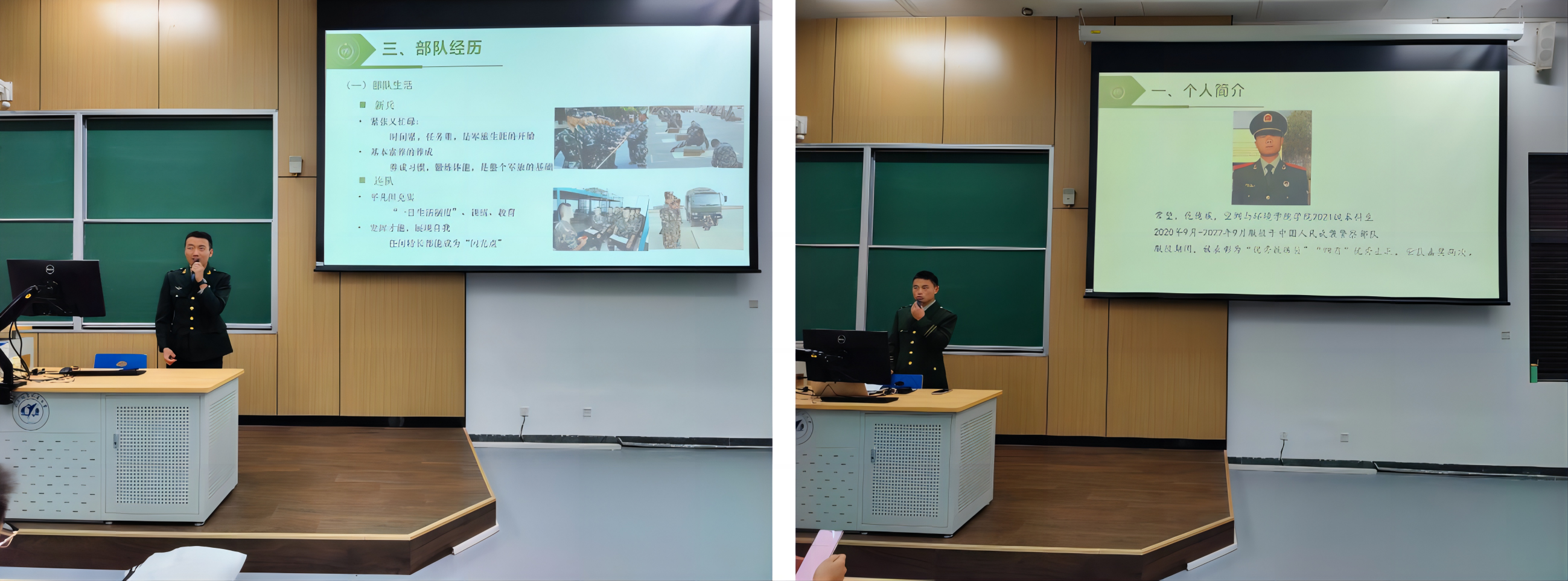 活动中,退伍老员工士兵代表夏勒根、常堃分享了自己的从军经历,讲述了自己在平凡岗位上不平凡的经历。夏勒根同学分享了自己在部队的训练日常以及退役后的感想感悟;常堃同学分享了自己的入伍动机,执勤经历以及训练科目。他们表示,参军报国不仅可以强健体魄、增长见识,还增强了抗压能力,对自身发展影响深远。同时,他们也呼吁同学们响应祖国号召,积极参军报国。