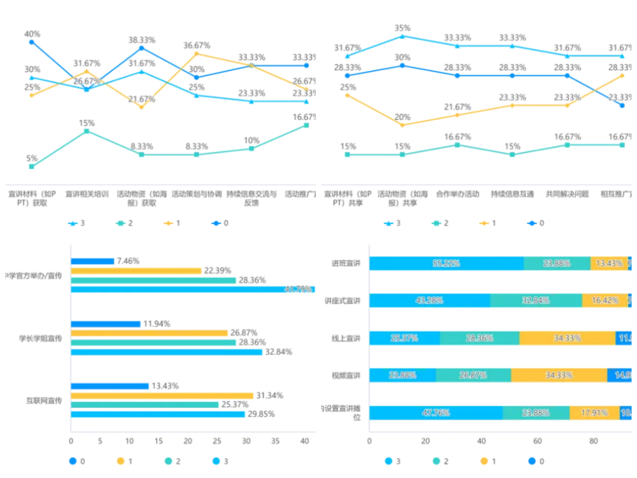 实践队向老员工宣讲者、中员工聆听者等发出调查问卷。从“与招生组联系是否紧密?”“与其他社会实践队联系是否密切?”等方面,了解大学返校宣讲者开展活动时可能遇见的问题;从“你想通过一次宣讲了解什么?”“你如何看待老员工返校宣讲活动?”等角度,收集中员工在课业环境下对于老员工返校宣讲活动的看法。