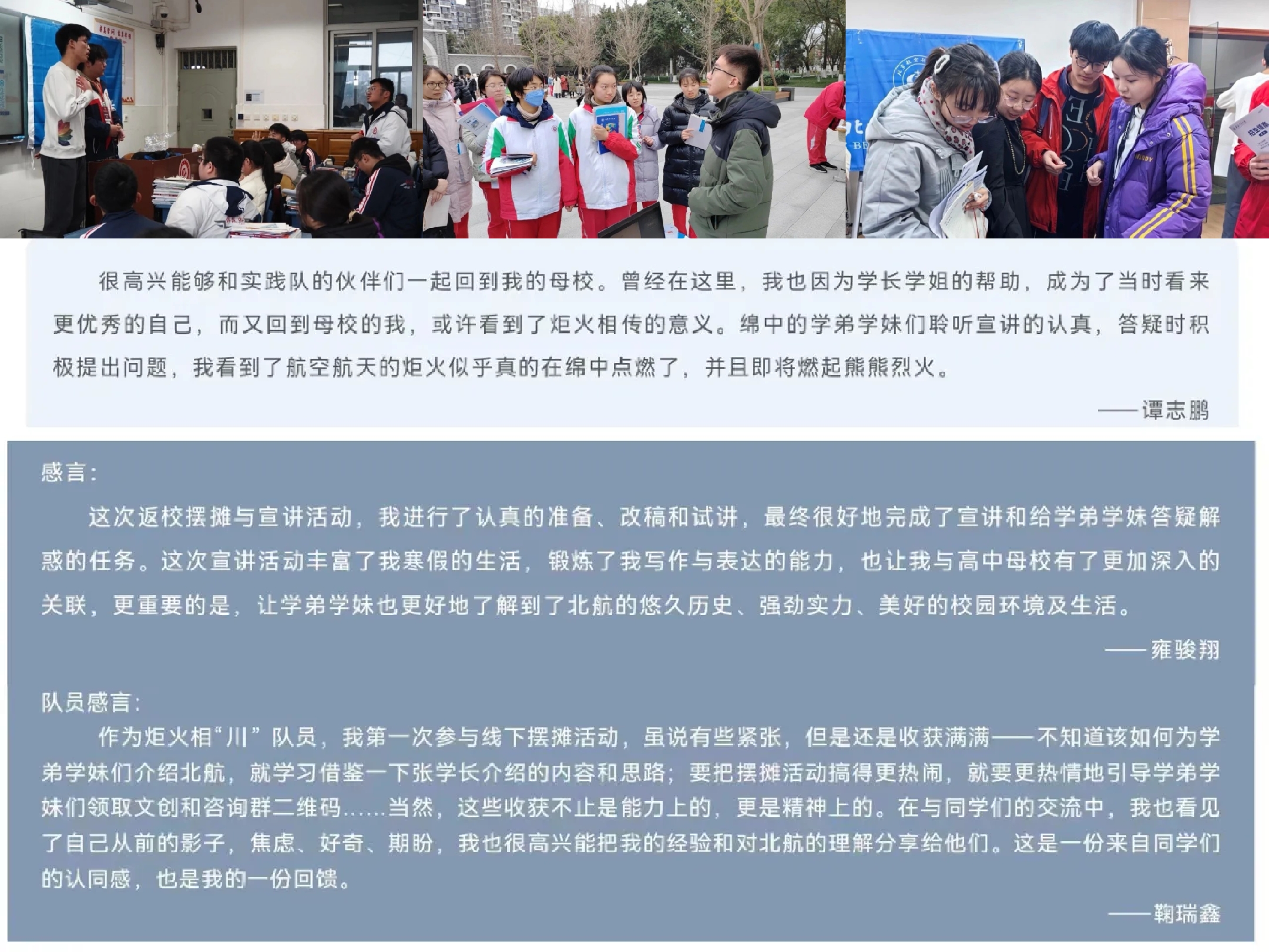 · 对于成都市树德协进中学的高三员工们,实践队侧重于分享高三心态调整经验,并带来了“四图识北航”宣讲。