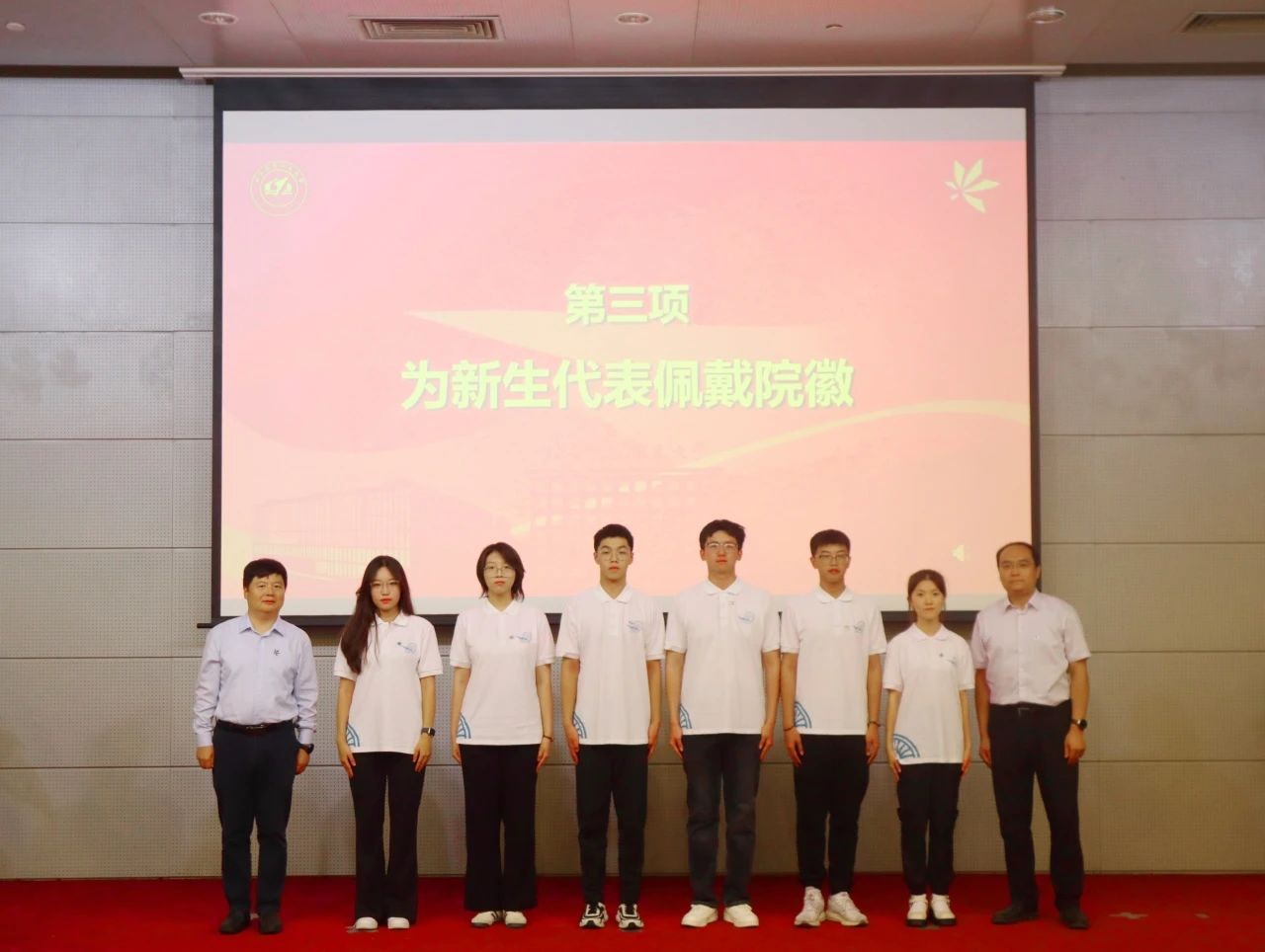 公司领导老师为新生代表授予院徽,鼓励动力学子们在未来人生路上,不忘初心,矢志前行。全体新生同步佩戴院徽,正式成为365best体育官网登录的一员。
