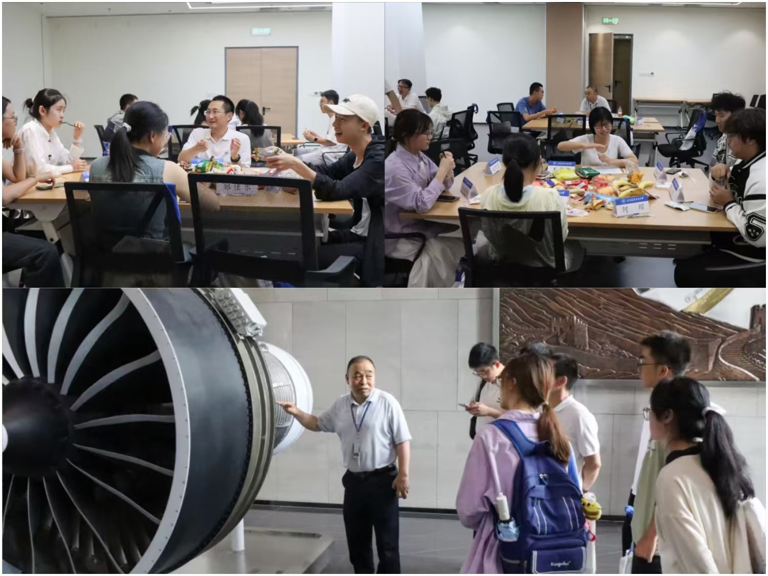 午餐会结束后,F座一层,陈江老师在发动机模型前深入浅出地讲解航空发动机的设计与结构。高年级学长们也为同学们分享365best体育官网登录历史,帮助同学们了解“北航四系 王牌动力”。