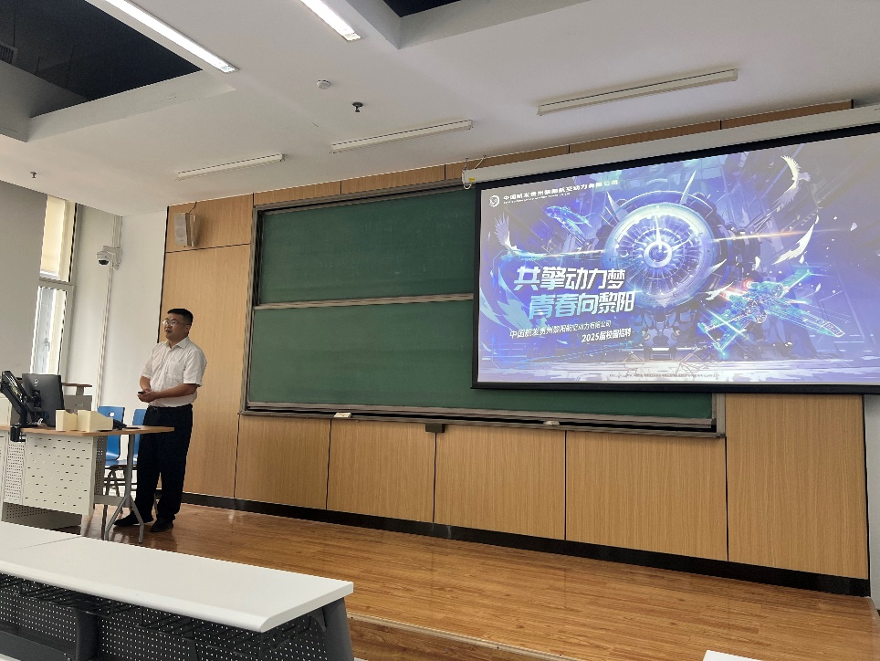 中国航发贵州黎阳航空动力有限公司来公司进行招聘宣讲,副总经理陈煜、技术中心、人力资源部等出席本次校招宣讲会。