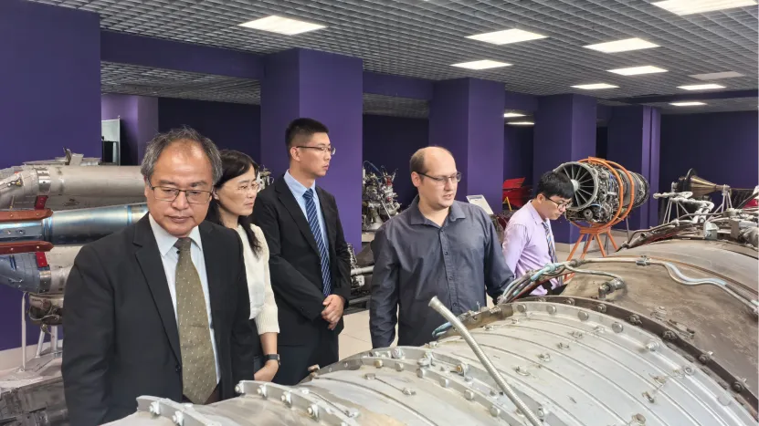 双边研讨会期间,莫斯科航空公司相关专业教学和科研人员陪同北航代表团参观了飞机机库和航空发动机陈列室,并进行了专业细致的现场讲解。最后,能源与动⼒⼯程公司副经理邱璐向莫斯科航空公司赠送了北航⽂化纪念品,双⽅均期待未来密切的合作。
