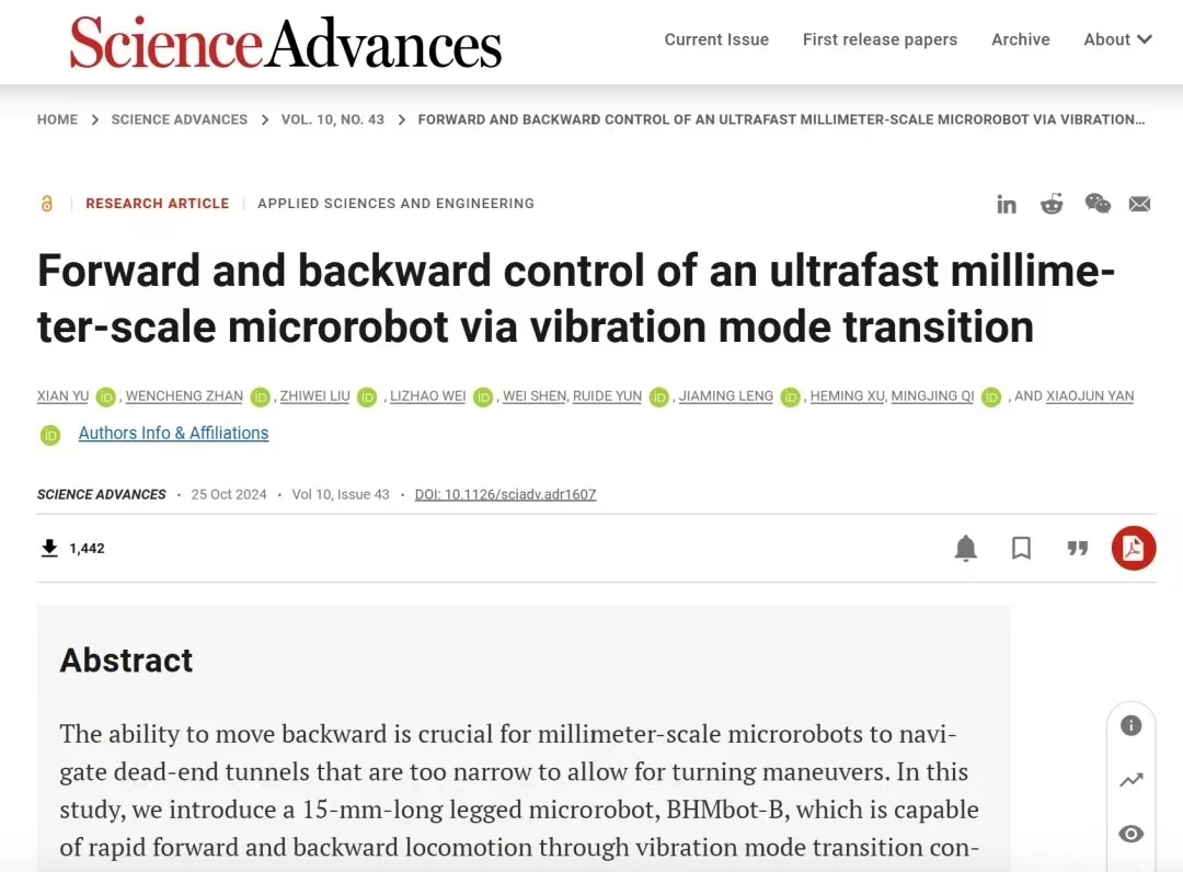 近日,该团队关于“昆虫机器人实现倒跑”的研究成果,登上了国际学术期刊《科学·进展》。这一刻,距闫晓军首次“牵手”微型机器人动力研究,已经过去15个春秋。