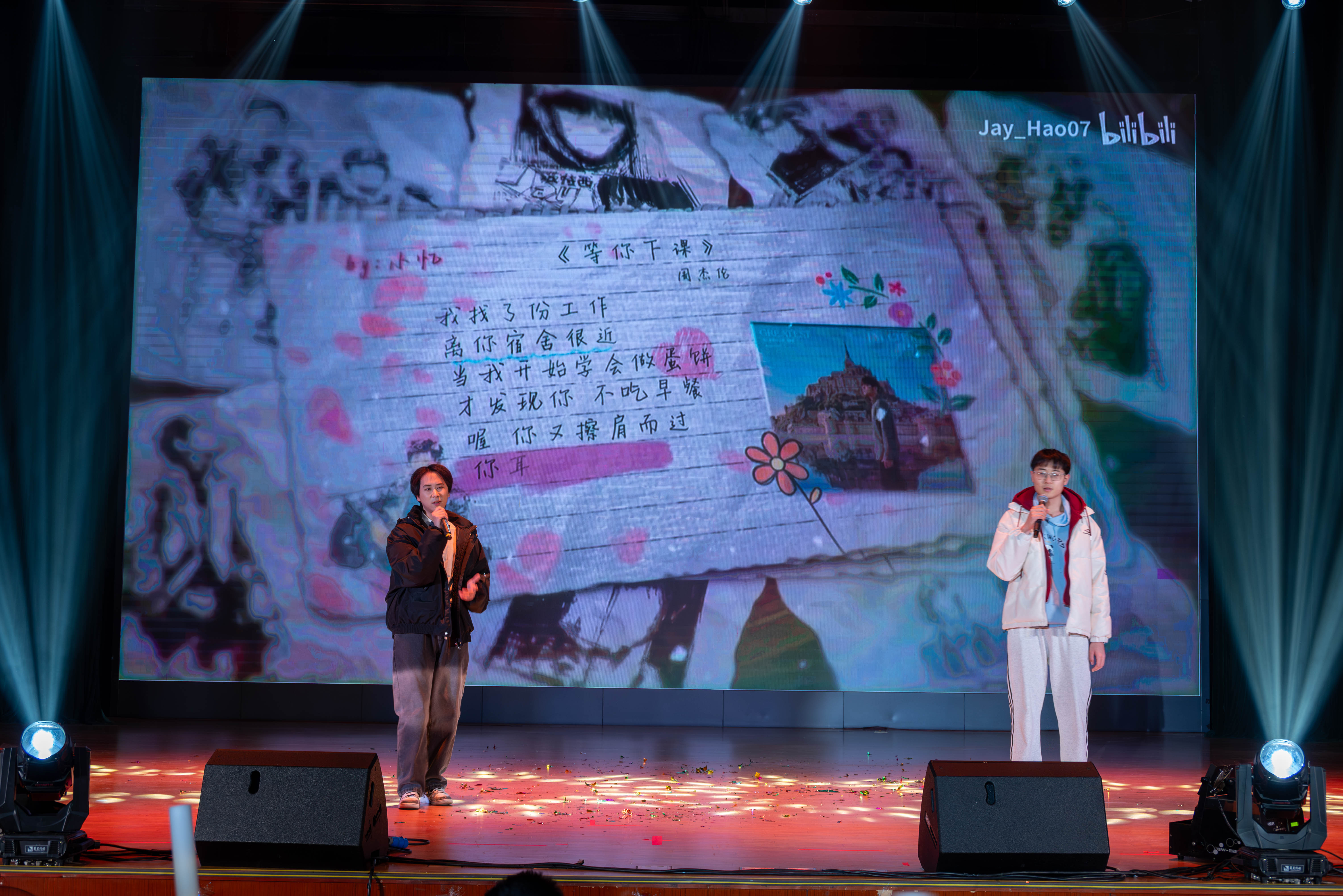 赵云霄、张昊楠同学带来的歌曲《等你下课》,牵动着听众内心最温柔的弦,表达出最真挚的情感和最美好的期许。