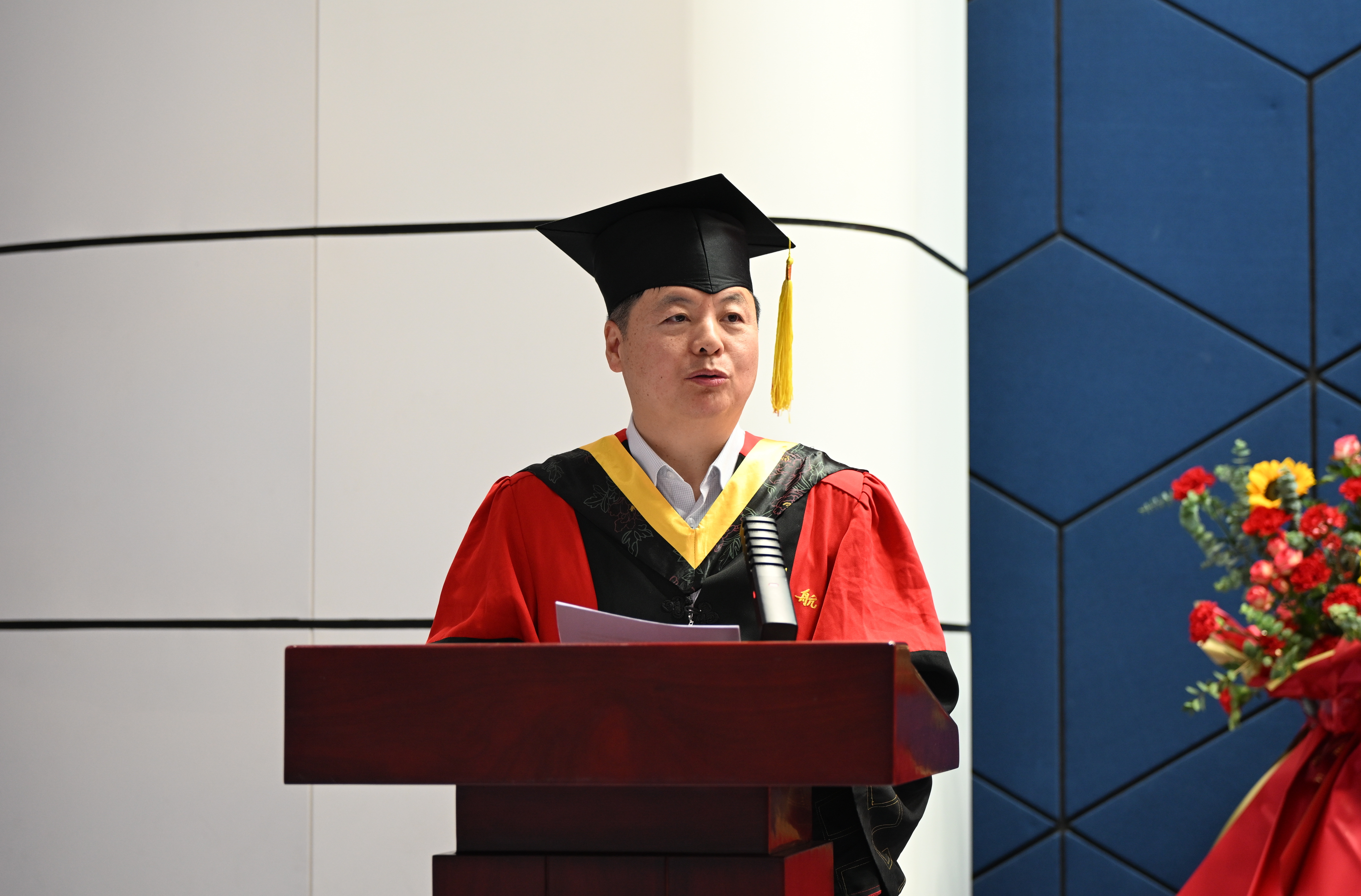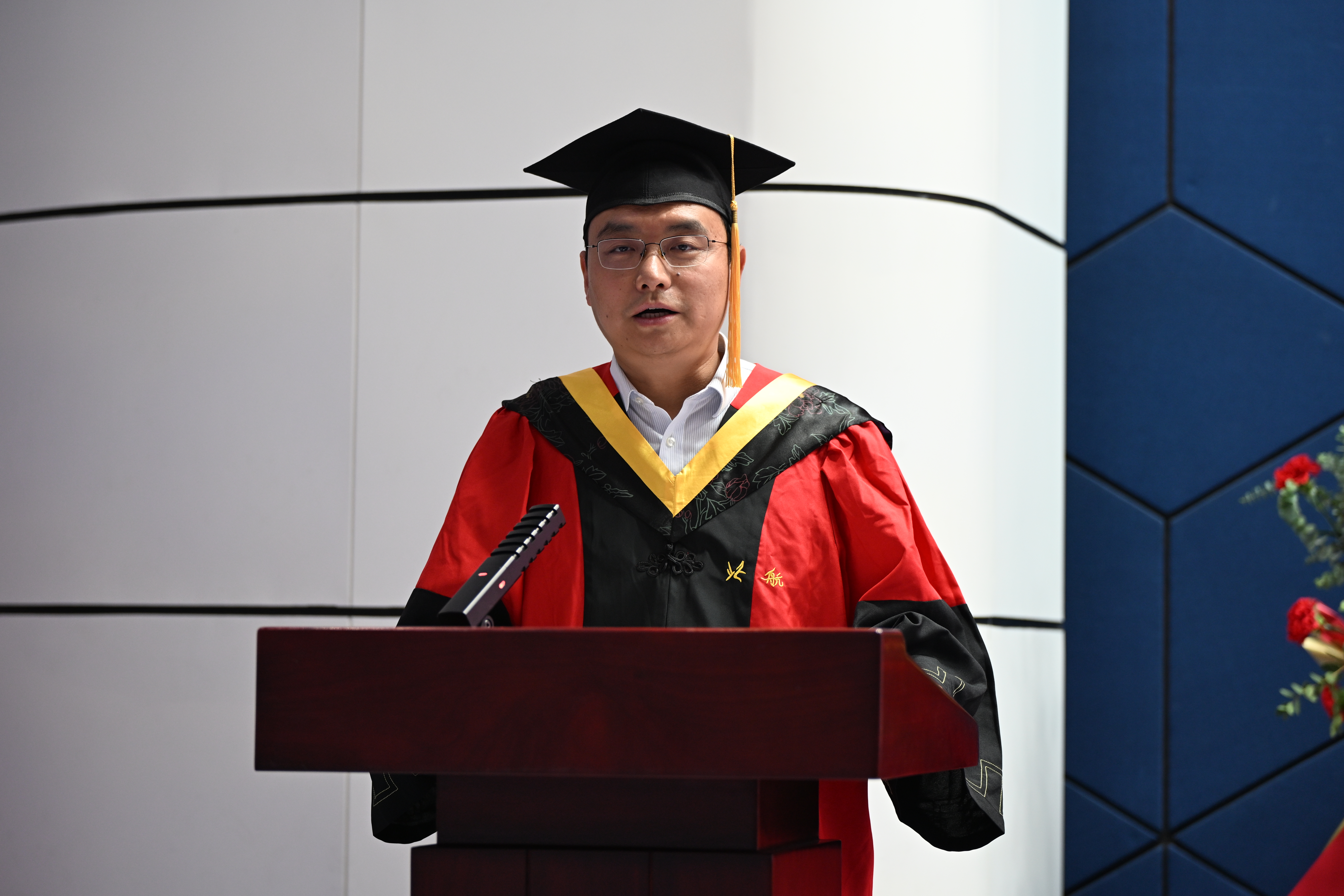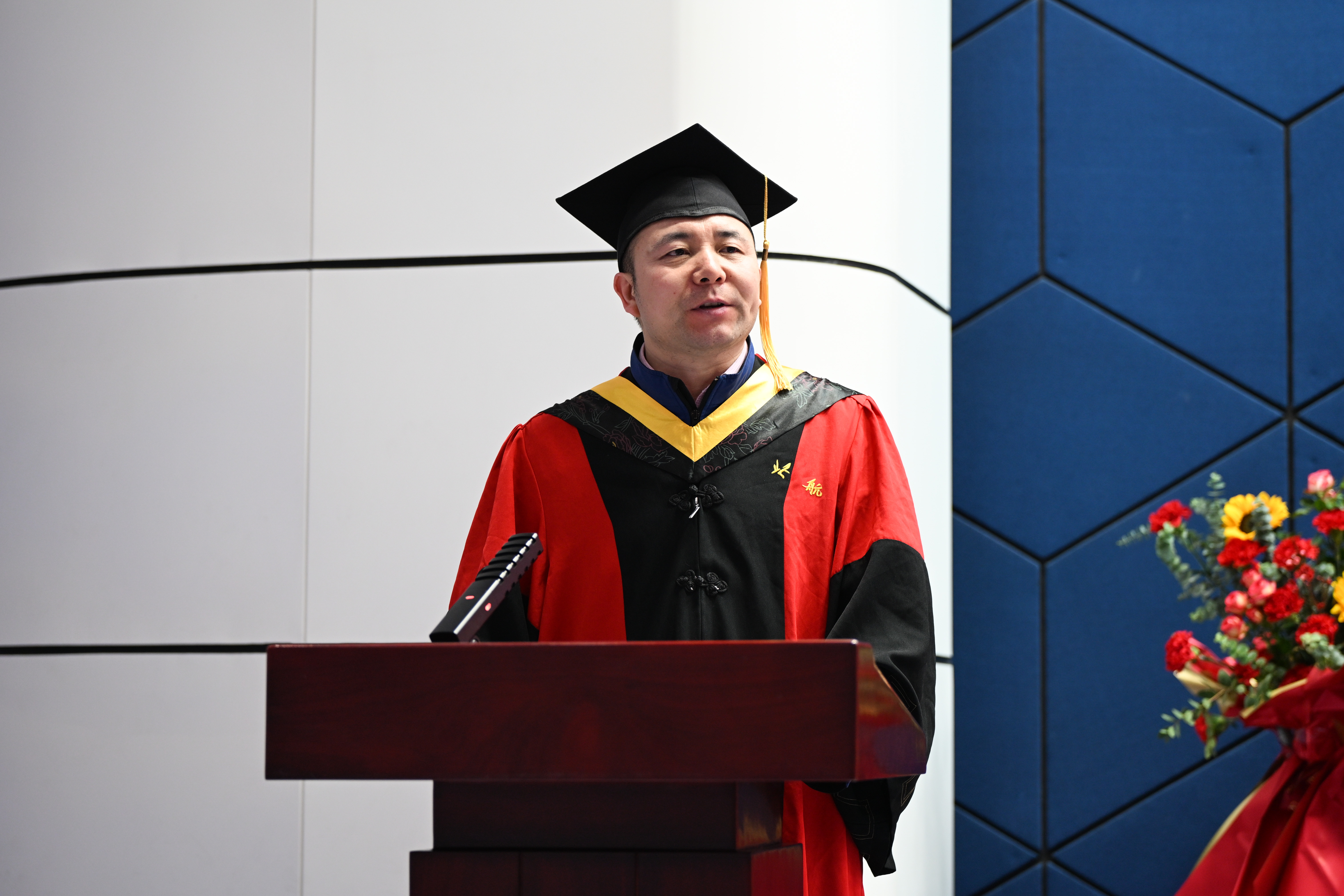 毕业生代表胡誉同学,回顾了在365best体育官网登录的求学历程,“坚忍不拔”、“脚踏实地”的科研精神、“恪尽职守”、“求真务实”的服务态度、“逐梦空天”、“航空报国”的人生理想已经成为了他作为北航动力人的标签,也将鼓励其肩负航空报国的使命,以满腔的热情和坚定的信念,为实现中华民族的伟大复兴贡献自己的力量。