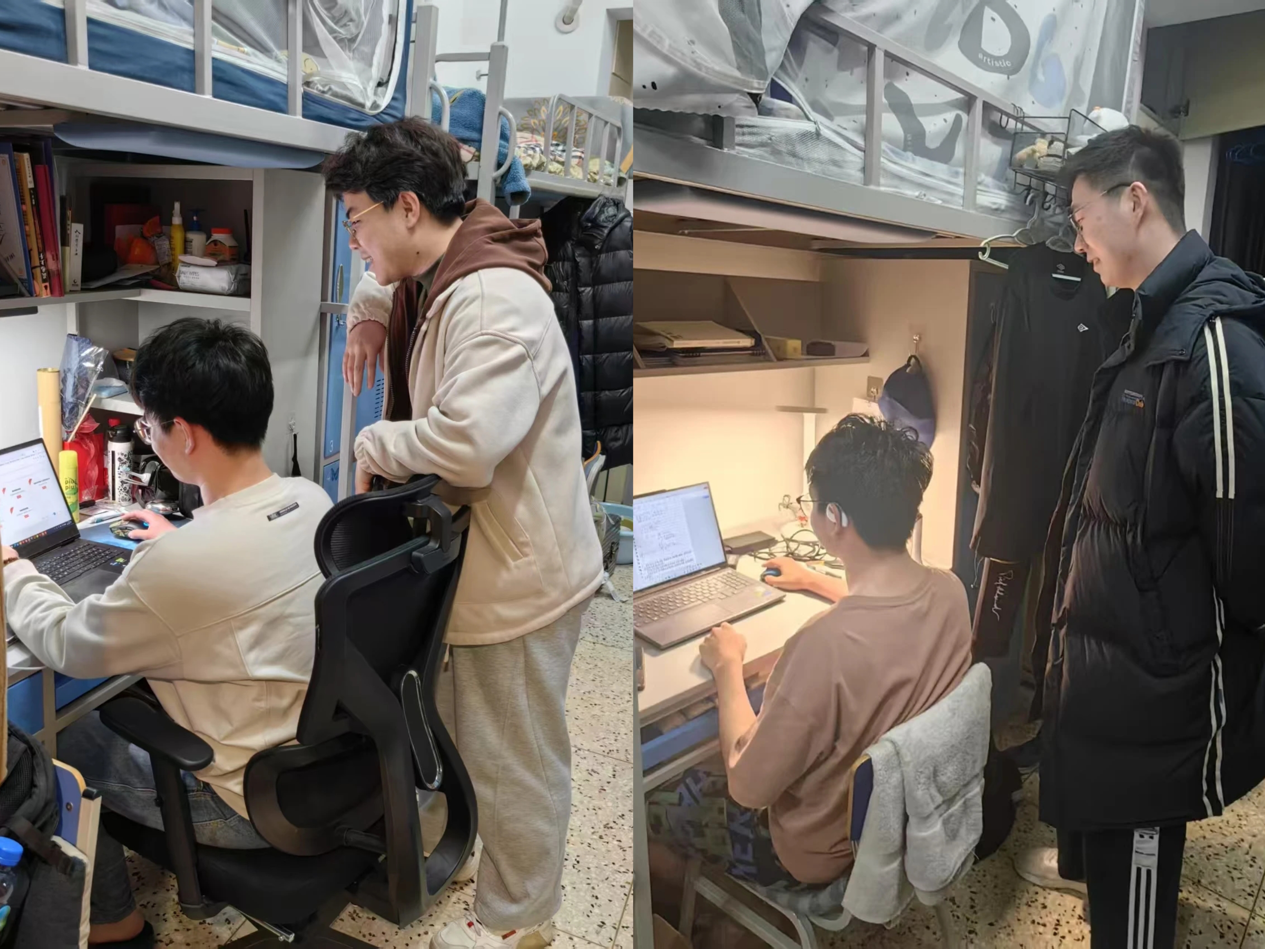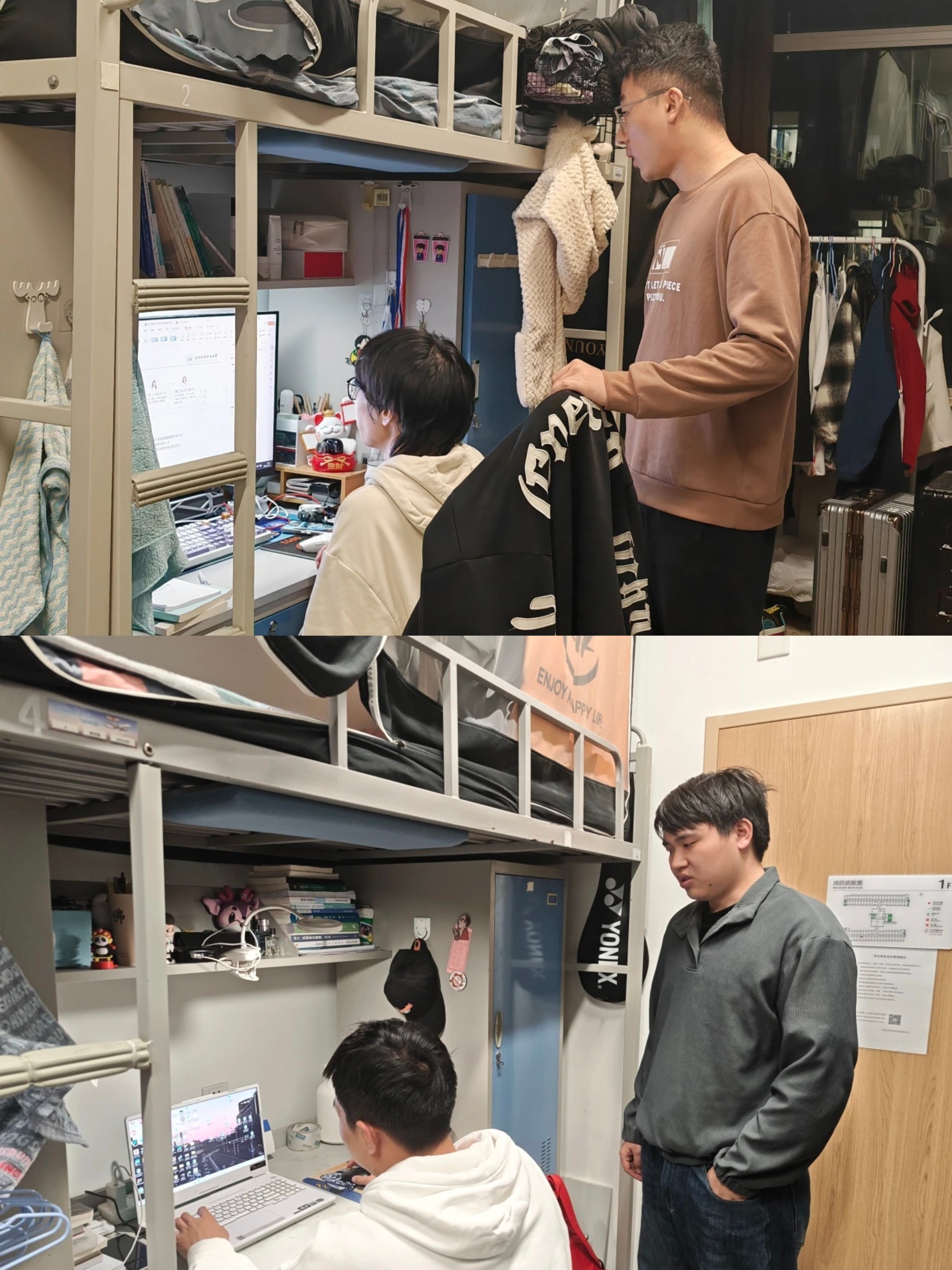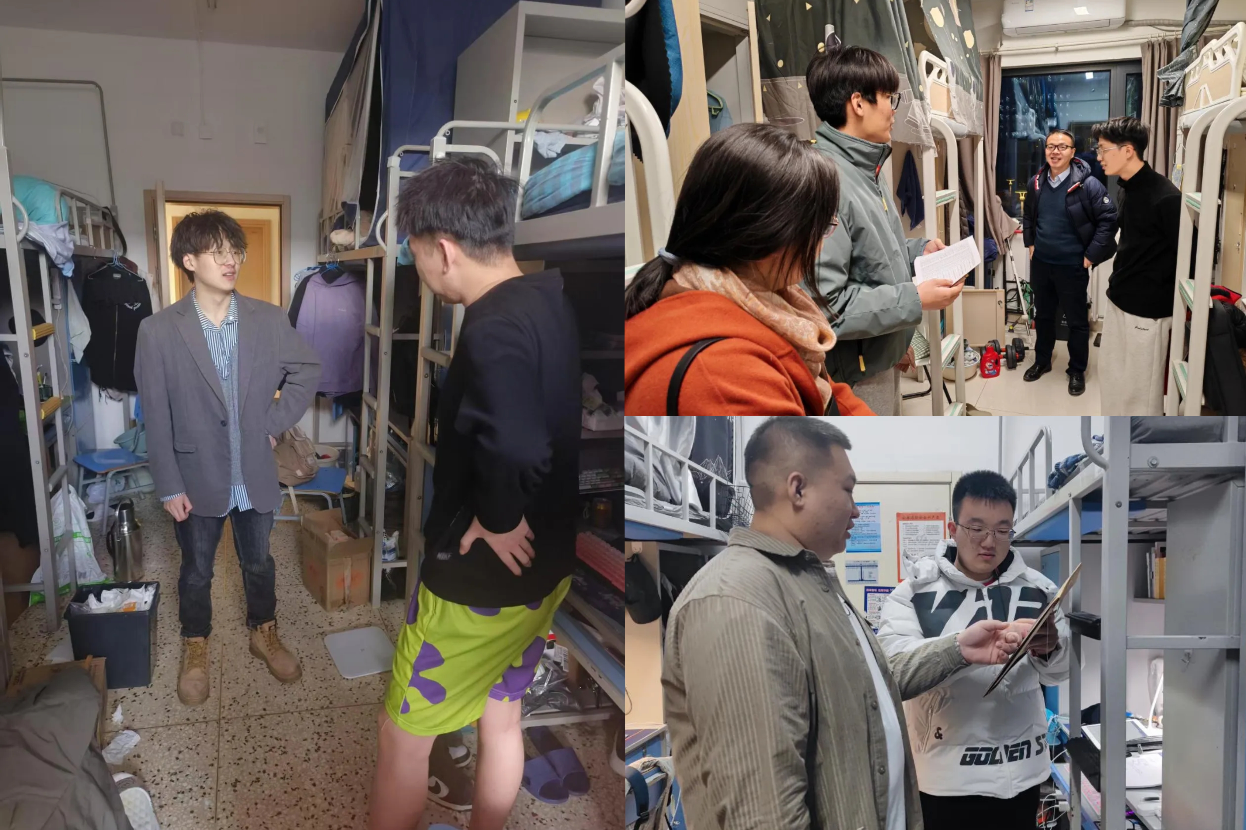 公司老师和辅导员走访员工宿舍,了解同学们的假期生活、学习进度、学期规划等。敲开房门,既有员工专注科研的身影,也有备考复习的专注,同学们已经进入状态,做好新学期的准备。