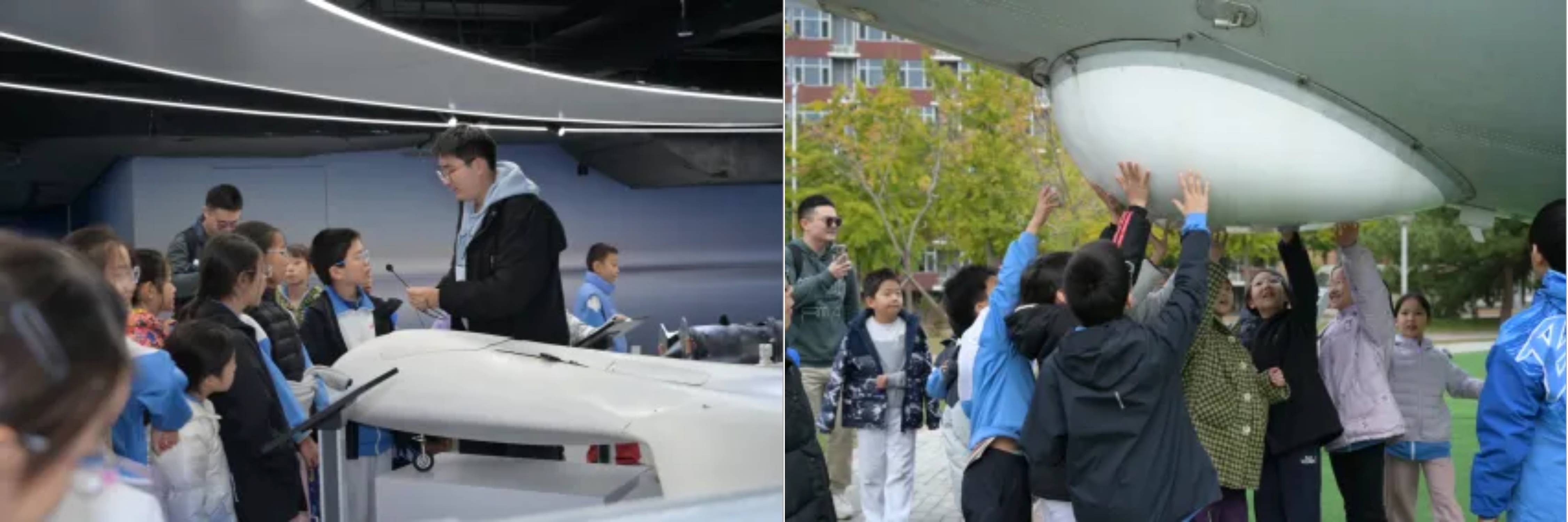围绕北京航空航天博物馆沙河馆展陈内容,启航宣讲团立足“馆校协同”育人模式,打造"沉浸式航空航天文化体验"特色导览项目,面向校内外师生、社会公众开展多层次活动,在实物观摩与互动实践中厚植青少年空天报国的使命担当。