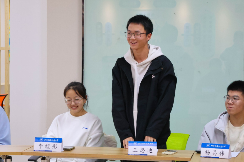 会上,宣讲团执行主席李泽铠汇报了宣讲团的工作成果和未来规划,“启航”宣讲团创新“启航+”宣讲模式,以北航校史文博资源、公司“心动”科教中心为依托,融合社会实践、志愿讲解、公益科普、党建引领等多个方面,营造独特的“场景式、沉浸式”宣讲风格。目前,科普讲解覆盖北航附小、人大附中、成都树德中学等12所公司,讲解校史、文博馆累计18场,服务人次超两万。