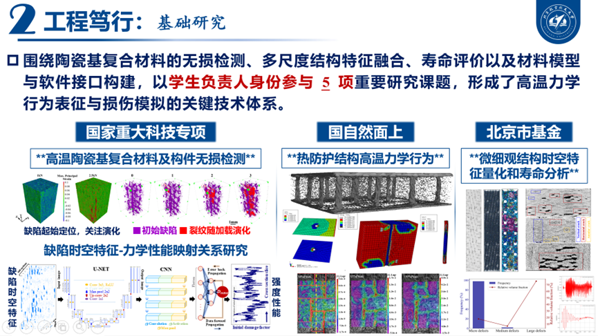面向国家重大需求,张波将科研重心从“论文成果”延伸到“工程落地”。以员工负责人身份参与国家重大科技专项、自然科学基金等5项重要科研课题,构建了材料损伤表征与寿命评估技术体系。在燃气轮机国产化方向,服务国内首台自主研制16MW燃气轮机,承担动力透平系统结构完整性校核与技术支持,为样机顺利通过满负荷试车提供支撑。在航空发动机领域,参与CJ1000发动机复合材料涡轮外环适航论证,助力国产大飞机动力系统轻量化。这一系列面向“真问题”的工程实践,使科研成果从“可发表”走向“能应用”。