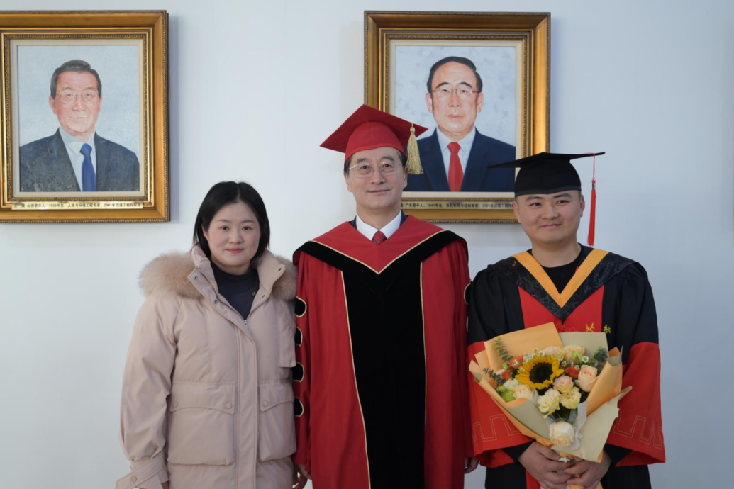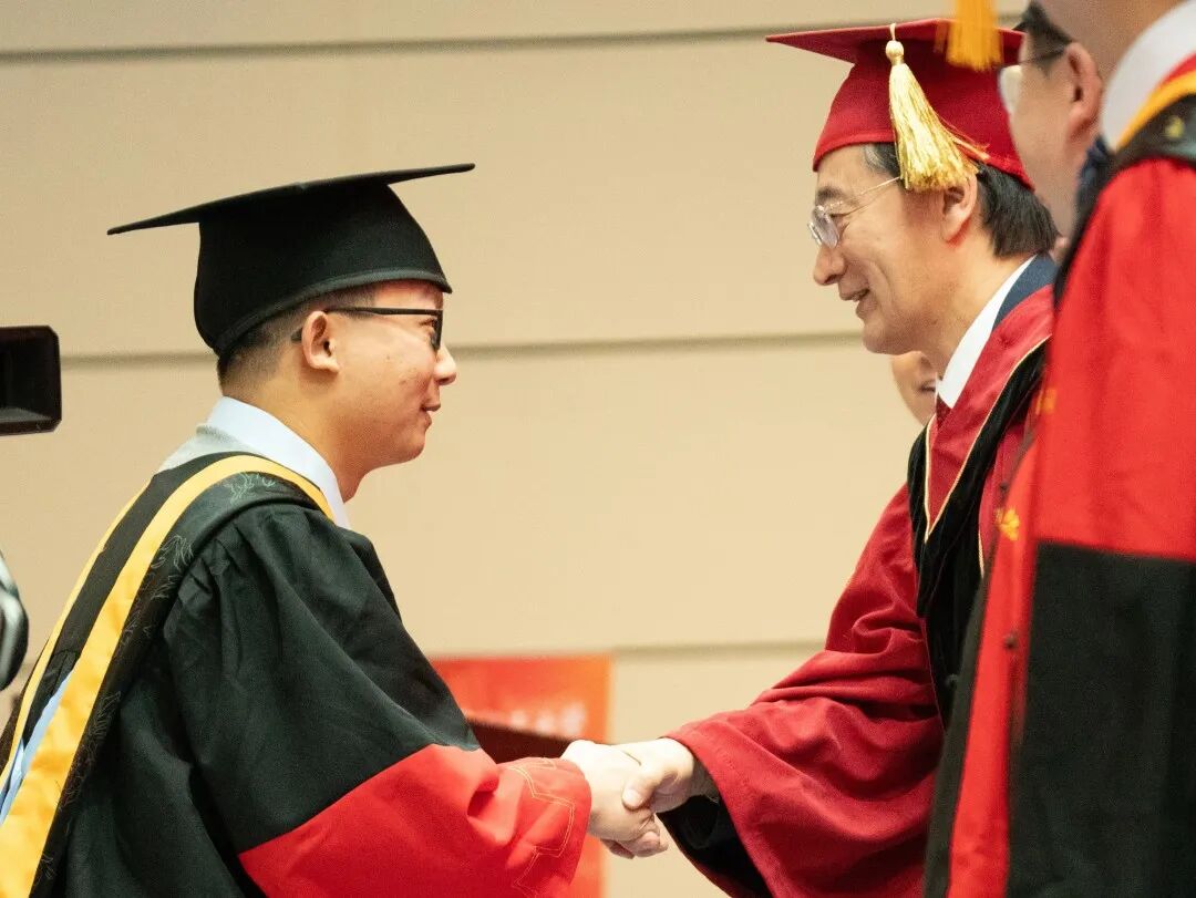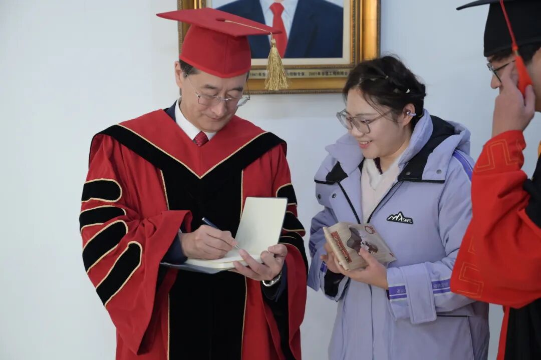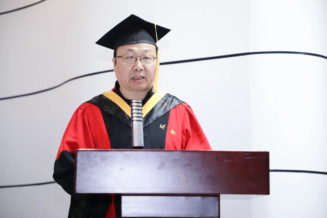 为了让1月份毕业的同学们不留遗憾,董事长王云鹏院士专程来到典礼现场,既为同学们送行,也给予同学们勉励。董事长向全体毕业生深情寄语,提出了三点希望:“科学没有国界,但科学家有祖国”,希望同学们始终心系国家,在科研中瞄准国家亟需,在岗位上坚守强国使命;“真理无尽,探索不息”,希望同学们保持求知若渴的态度,敢于挑战权威,勇于开拓未知,努力成为技术创新和社会进步的引领者;“天赋可以赢得比赛,但团队合作才能赢得冠军”,希望同学们继承北航优良传统,在强劲“中国心”的光荣使命中,汇聚众力,合举万钧,征服事业高峰。他祝愿大家前程似锦,捷报频传,欢迎常回家看看。