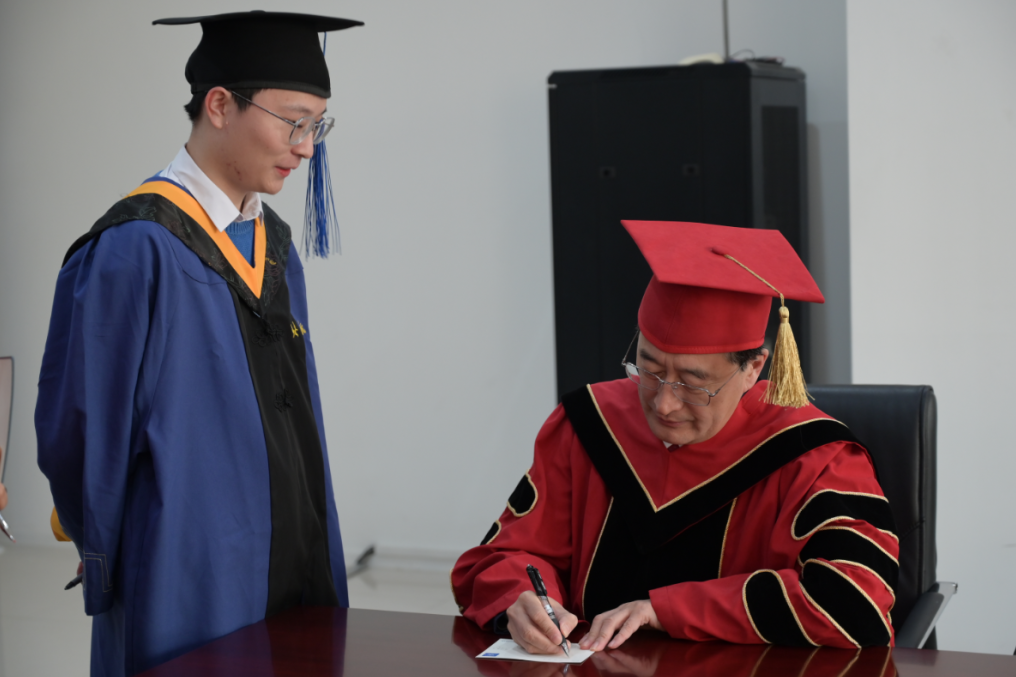 随后,毕业生学位授予仪式正式开始。与会领导和嘉宾为毕业生拨穗正冠,送上最为真挚的祝福并合影留念。