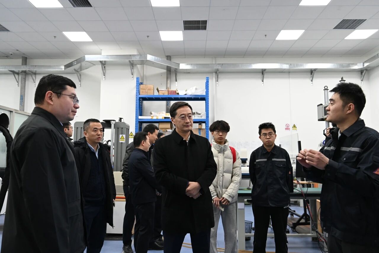 在调研实验室建设时,王云鹏实地走访了航空发动机复杂系统安全性实验室与航空发动机强瞬变热环境结构安全实验室,听取了各实验室博士研究生对研究项目的介绍,详细了解各团队最新研究进展与代表性成果,并与在场的教师和博士生亲切交谈。他鼓励同学们夯实科研基础,坚定研究方向,持续提升自身能力;主动加强与科研院所的协同合作,推动研究成果向工程实践转化;把握国际交流机遇,提升全球视野,在互学互鉴中实现科研突破。他强调,要大力推进本研贯通培养,为本科生创造更多进入实验室的机会,帮助他们在科研实践中提升学术素养与学习能力,为后续研究生阶段的学习和科研工作打下更坚实的基础。
