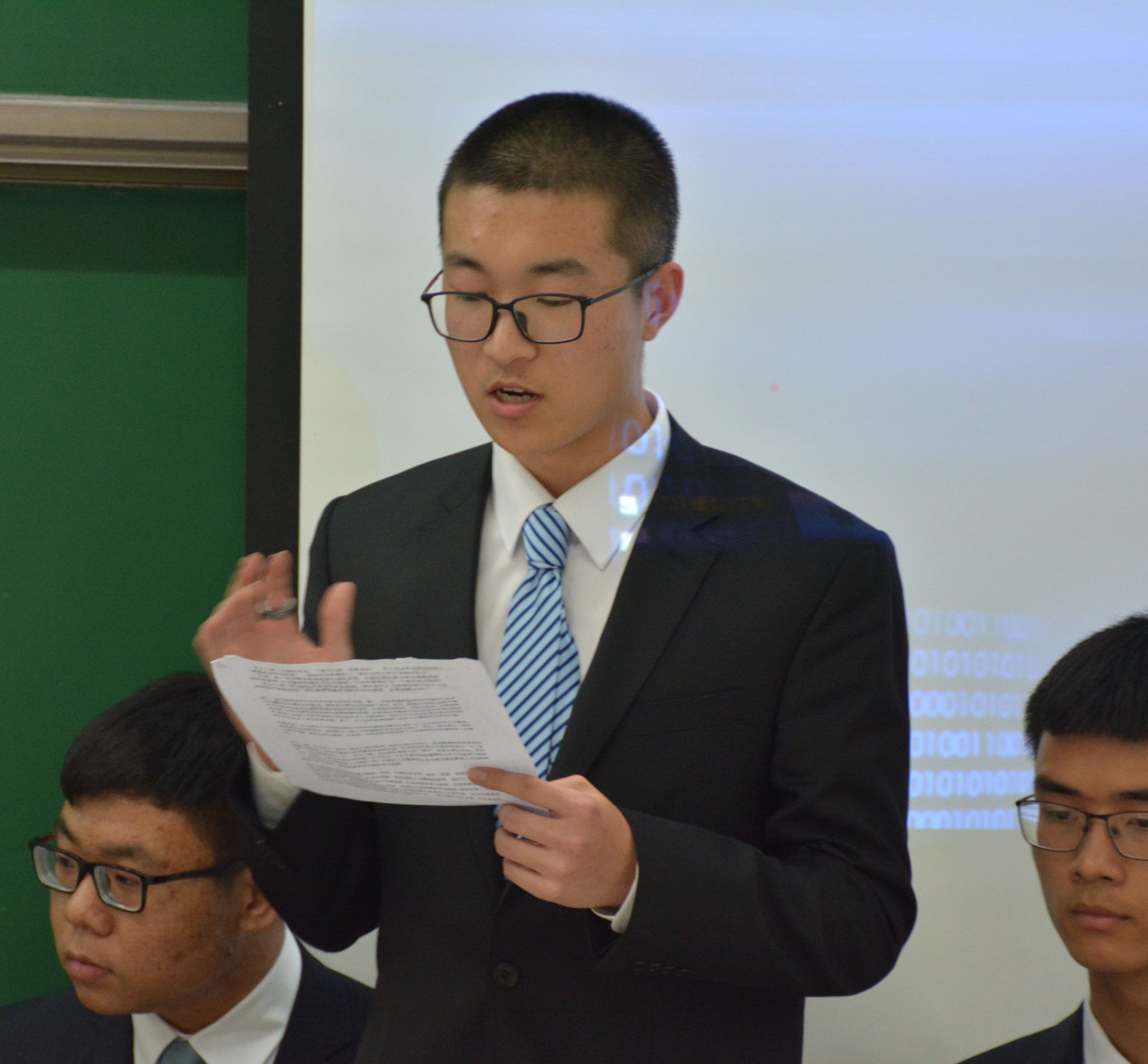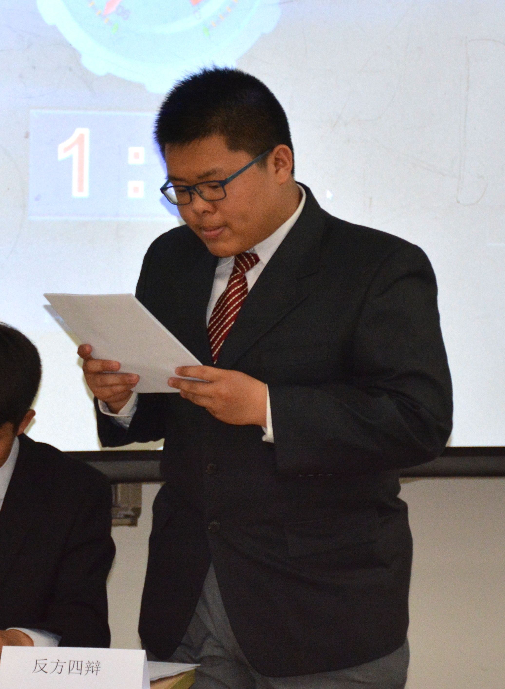终于到了战况激烈的自由辩论环节,反方思路清晰,专注于从“缺失性比较”等方面论述己方观点,反方三辩王明鑫妙语连珠,用丰富的事实论据、道理论据证己方观点,反驳对方观点,展现出自己的风采。