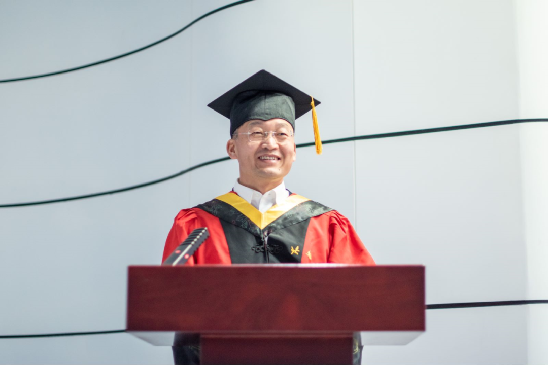 导师代表石多奇老师对同学们顺利毕业致以热烈的祝贺!希望同学们脚踏实地、仰望星空,保持学习和独立思考的习惯,保持做人的底线、乐观向善,带着坚韧和勇气不断前行。