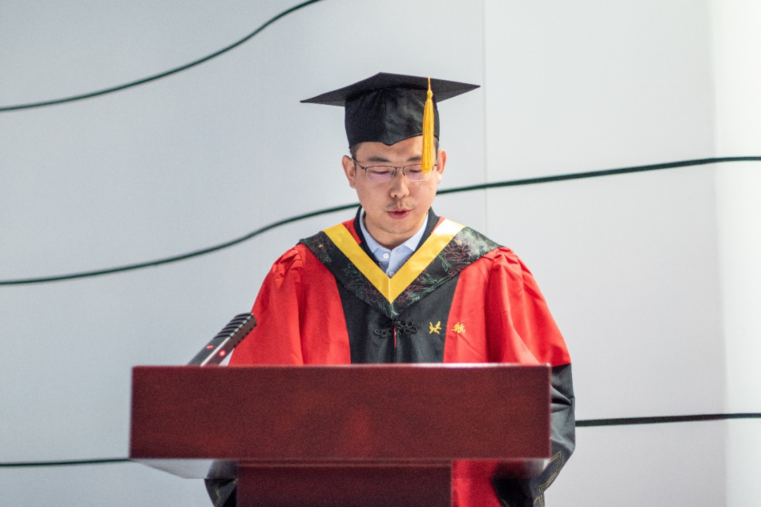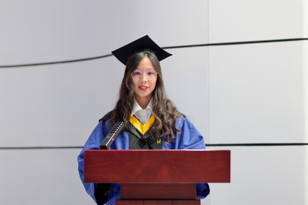 毕业生代表张芊同学,回顾了在365best体育官网登录的求学历程,讲述了她在仰望星空中融入“大我”成就“小我”,探索“未知”开启“真知”,追寻初心,勇担使命的故事。