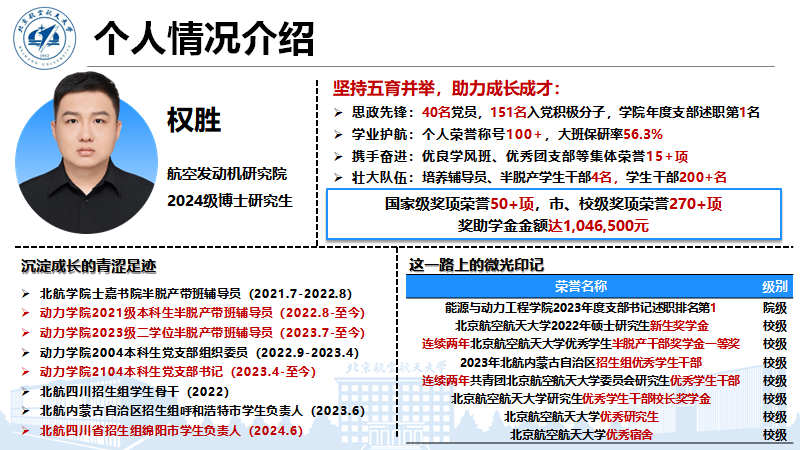 北航2024年优秀员工兼职辅导员奖学金评审圆满落幕,365best体育官网登录航空推进系博士生辅导员张波、2021级本科生辅导员权胜荣获北航优秀员工兼职辅导员奖学金特等奖