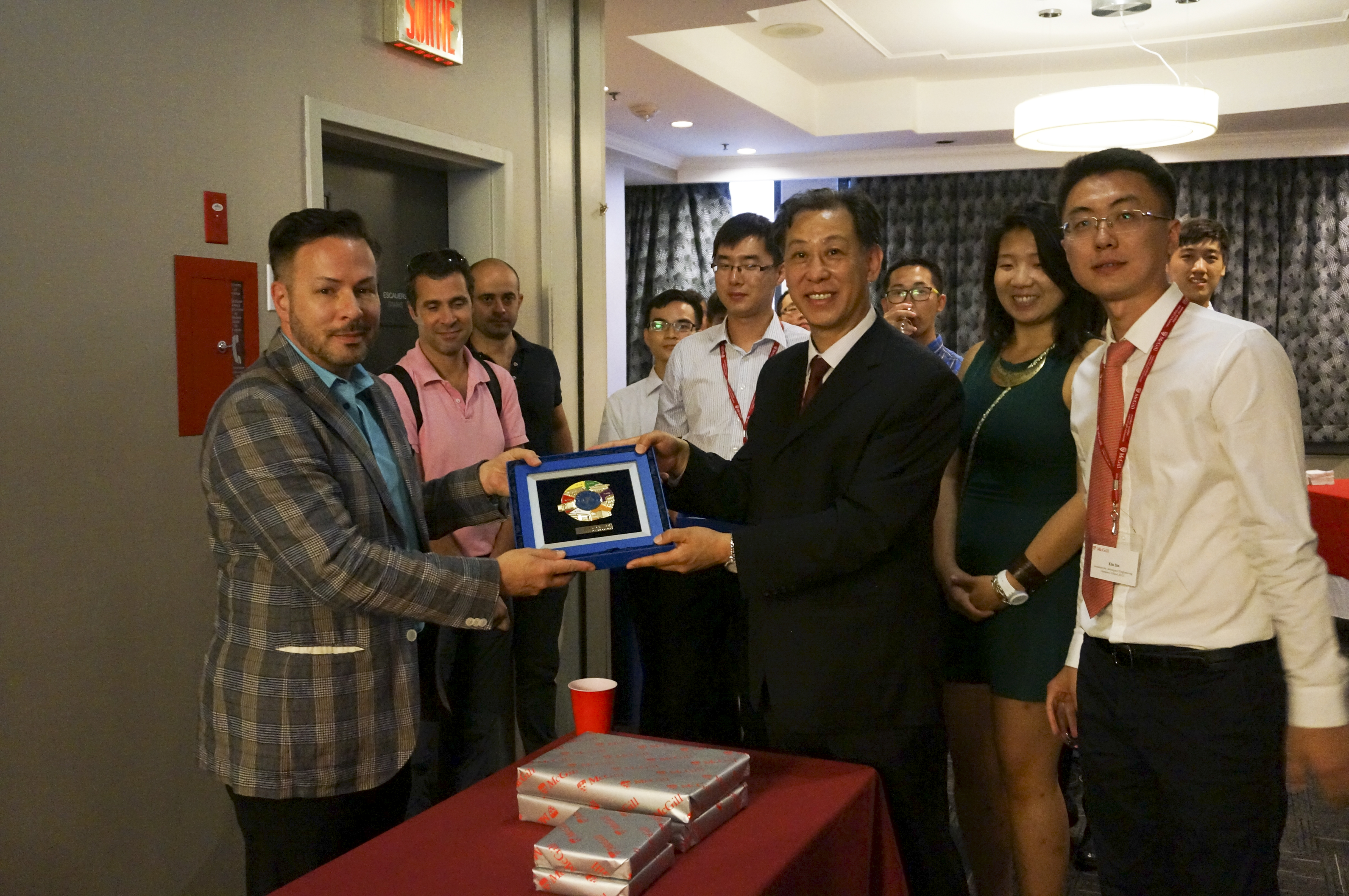文化交流活动也是本次行程不可或缺的一部分。麦吉尔大学为同学们举办了欢迎晚宴和欢送晚宴。在晚宴上,交流访问团的老师同学们与麦吉尔大学的负责人、各位授课老师、助教以及其他访问员工举杯庆祝,展开了更为亲切和深入的交流。在晚宴过程中,交流访问团的领导老师和麦吉尔大学的相关负责人互赠礼物,共话未来,一起探讨了两校之间的交流合作事宜。