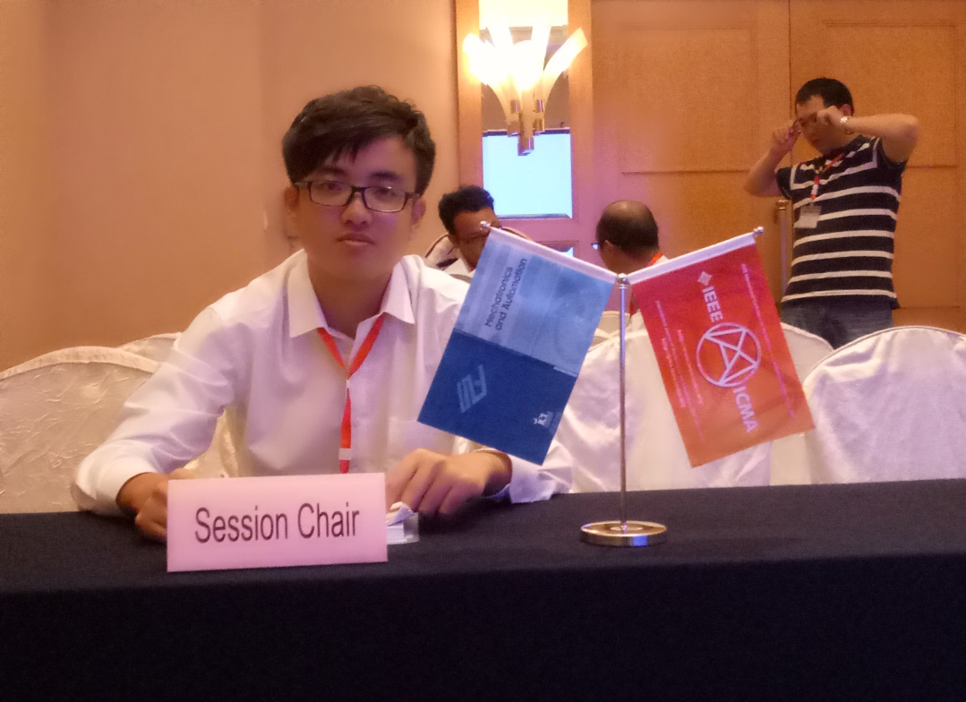 2013级本科生吴弘涛、方一博在此会议上发表文章“An untethered self-reconfiguring paper-based locomotive robot with pneumatic actuators”,方一博作为代表受邀出席,并担任分会场主席,在会议上进行了精彩的演讲,与来自全球各国的专家学者们进行了学术交流。
