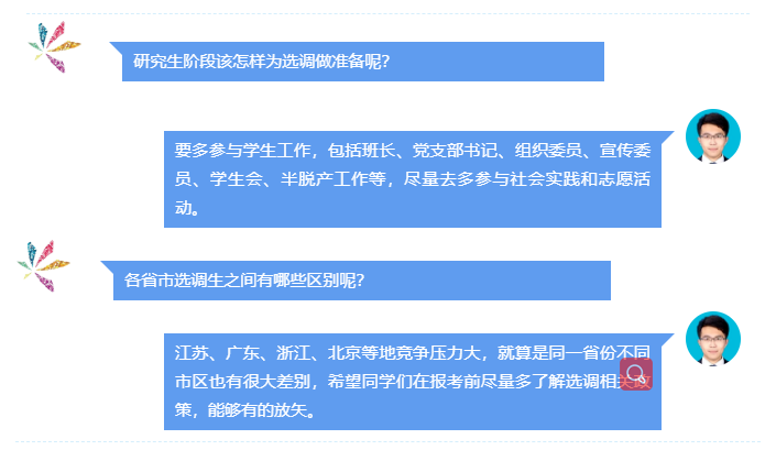 同时他还介绍了几个省份的选调政策和报考要点,指出应充分了解各省后再选择报考省市。他指出选调考试是为全面考察考生的综合能力,想考选调生的同学要尽量多参加员工工作,这样才能在简历筛选和面试时占据优势。